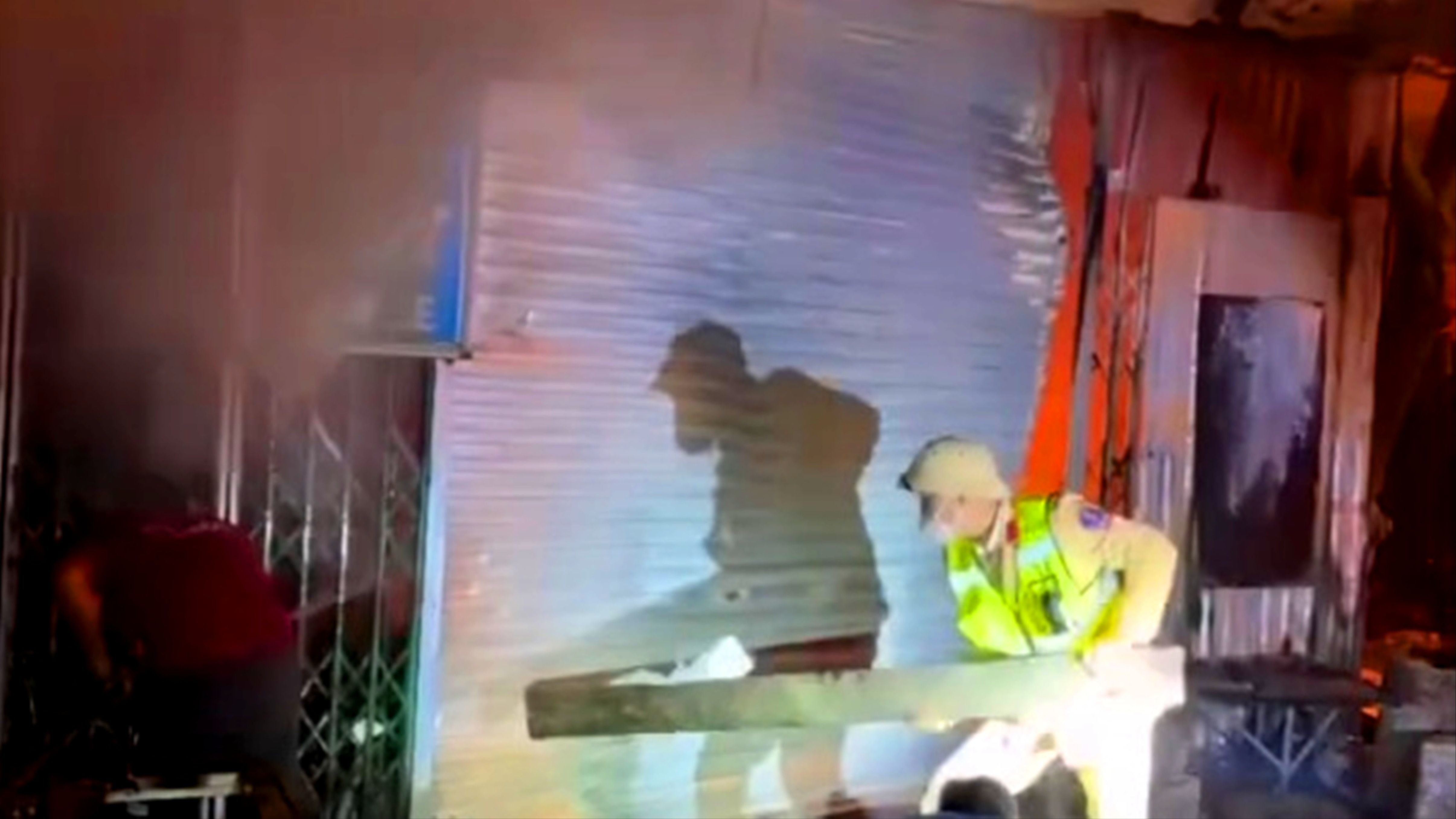 Sáng 11-1, CSGT cùng người dân phá cửa, giúp người dân thoát khỏi đám cháy. Video: Công an cung cấp