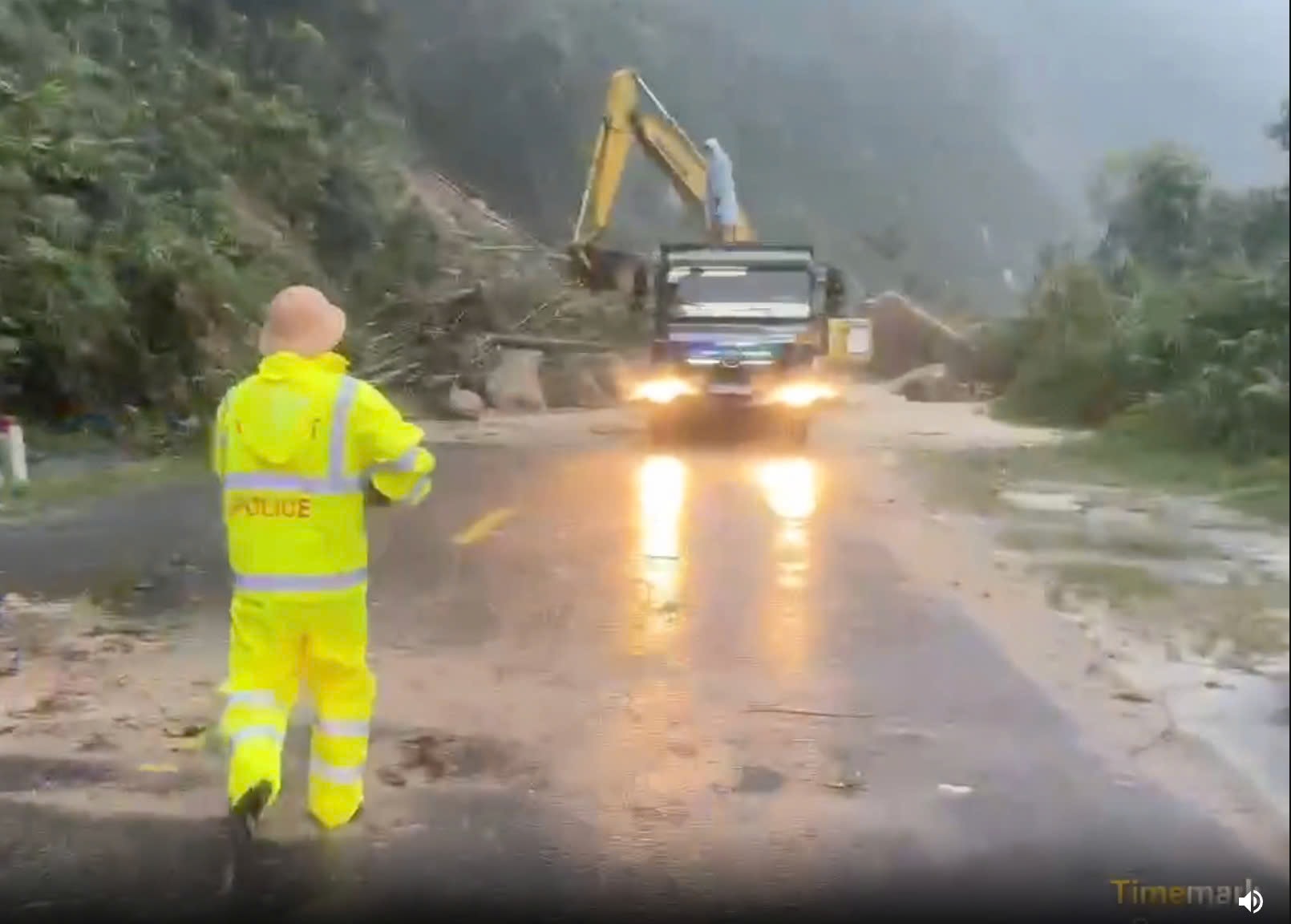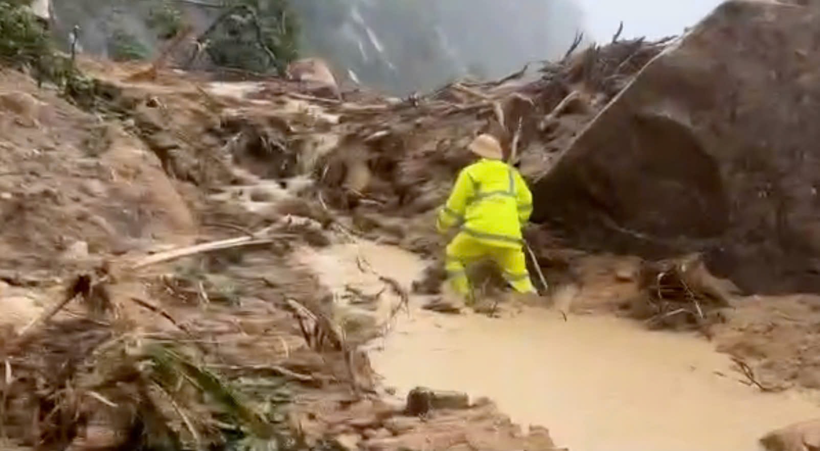 Cảnh sát giao thông và lực lượng cứu hộ tại điểm sạt lở cuối cùng trước khi tiếp cận được những người mắc kẹt
