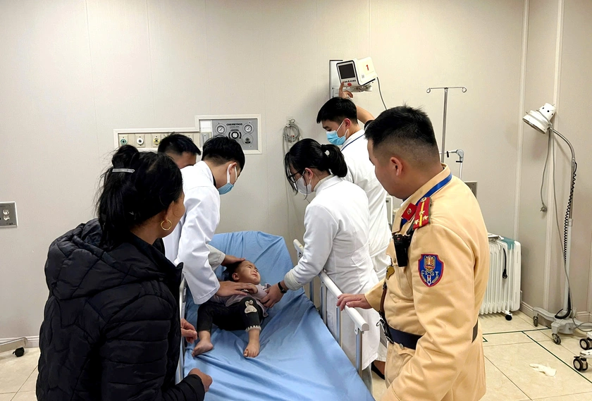 Nhận thấy đây là tình huống khẩn cấp, Tổ công tác đã nhanh chóng báo cáo chỉ huy Đội cảnh sát giao thông đường bộ số 5, đồng thời sử dụng xe công vụ đưa cháu bé cùng người nhà đến Bệnh viện đa khoa số 1 tỉnh Lào Cai.