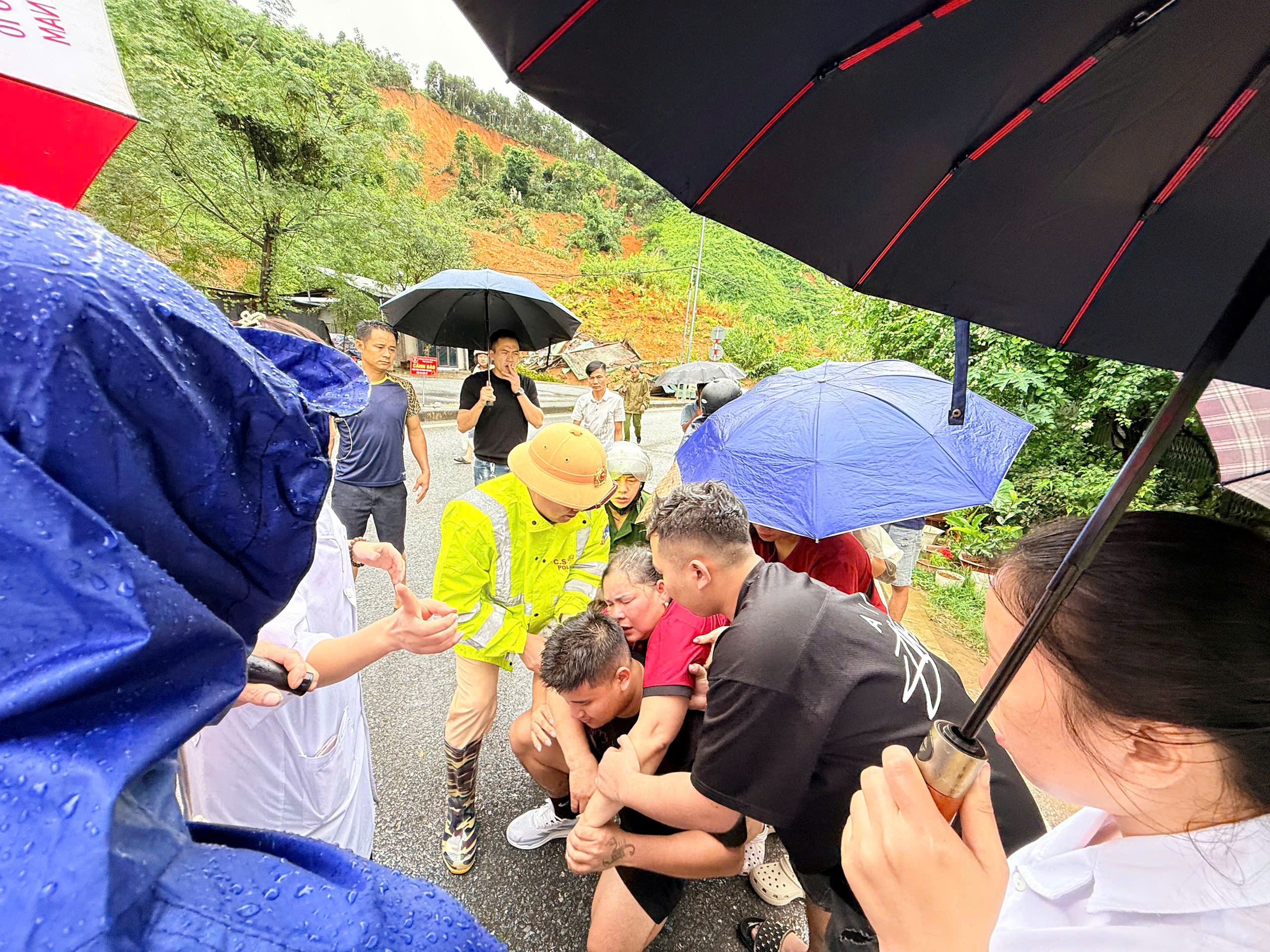 Phát hiện dấu hiệu đất đá sụt xuống, đại úy Trần Hữu Phương và đại úy Lê Đức Mạnh, cán bộ, chiến sĩ Đội Cảnh sát giao thông đường bộ số 2 (Phòng Cảnh sát giao thông, Công an tỉnh Lào Cai) đang làm nhiệm vụ tuần tra gần khu vực đã nhanh chóng hô hoán, ra hiệu lệnh dừng xe, đồng thời trực tiếp tiếp cận, hỗ trợ di chuyển người dân ra khỏi khu vực nguy hiểm.