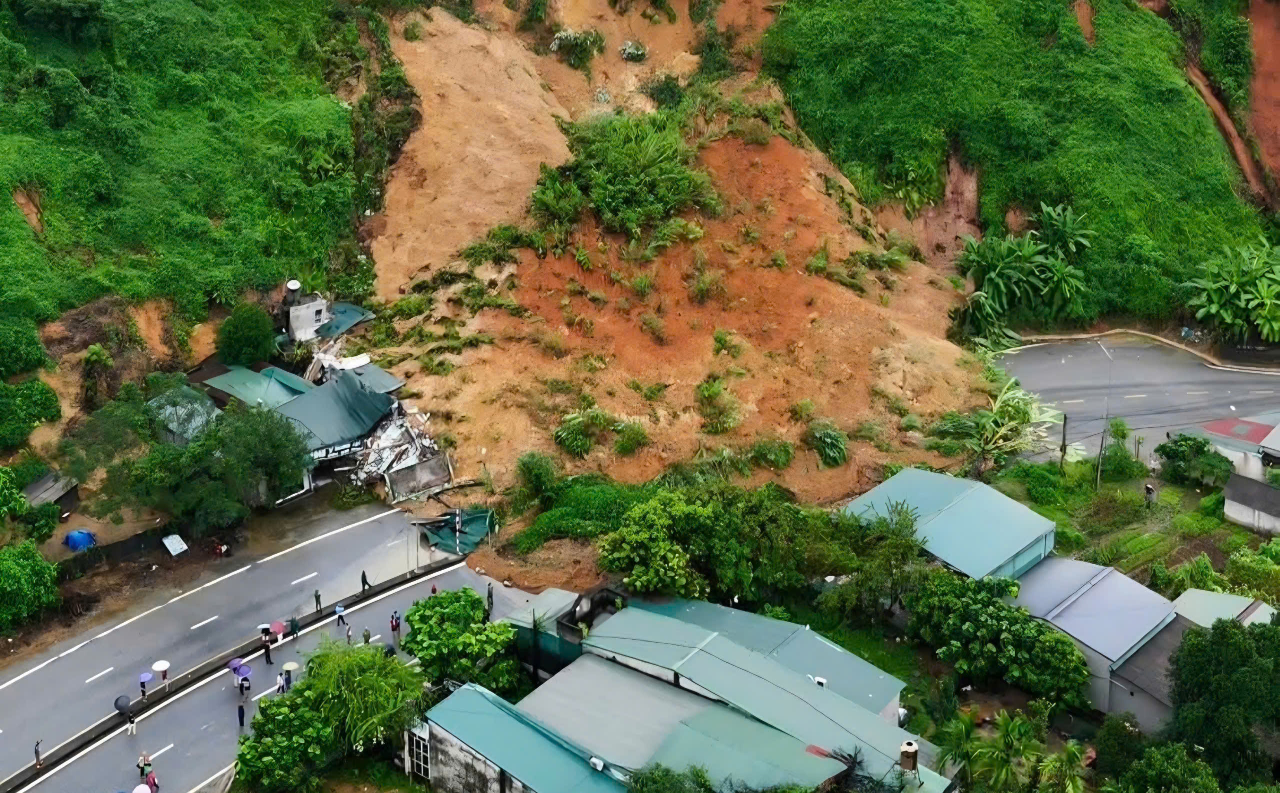 Chỉ vài phút sau đó, toàn bộ ta luy dương đổ sập, vùi lấp một đoạn đường dài hàng chục mét.