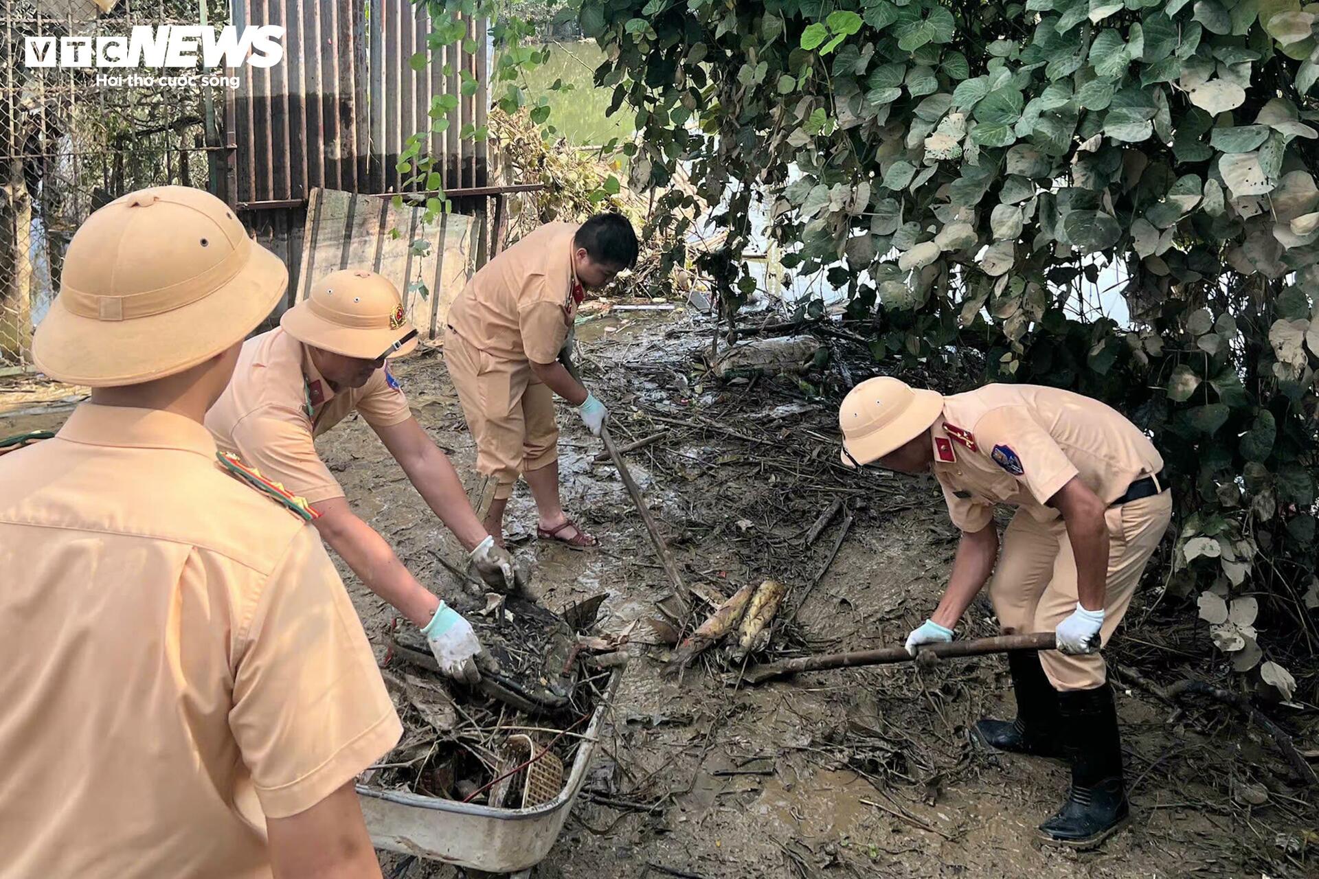 Sau khi nước rút, CSGT Hà Nội huy động lực lượng và phương tiện đến các khu vực bị ảnh hưởng, chung tay cùng người dân dọn dẹp nhà cửa, sắp xếp lại đồ đạc, ổn định cuộc sống.