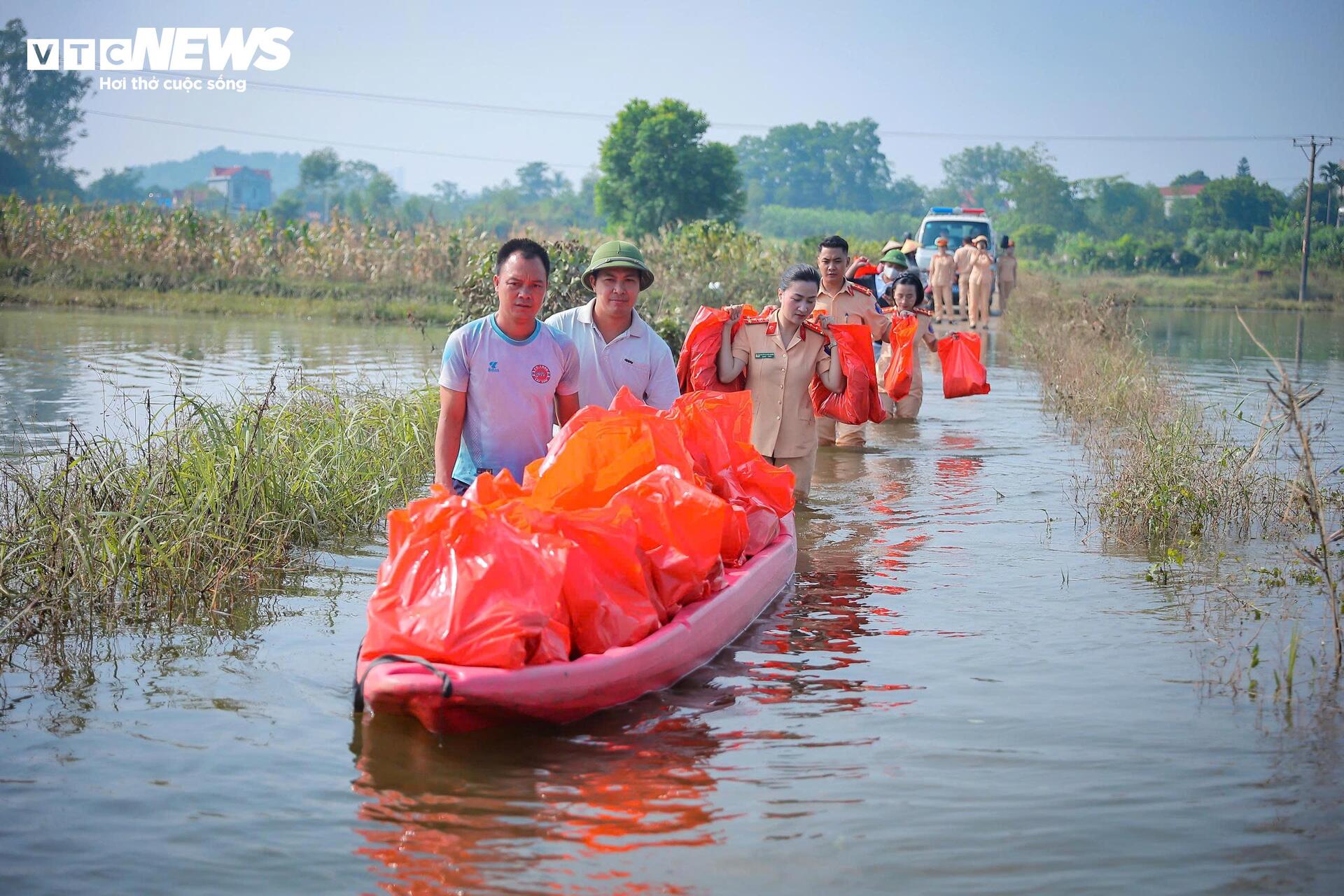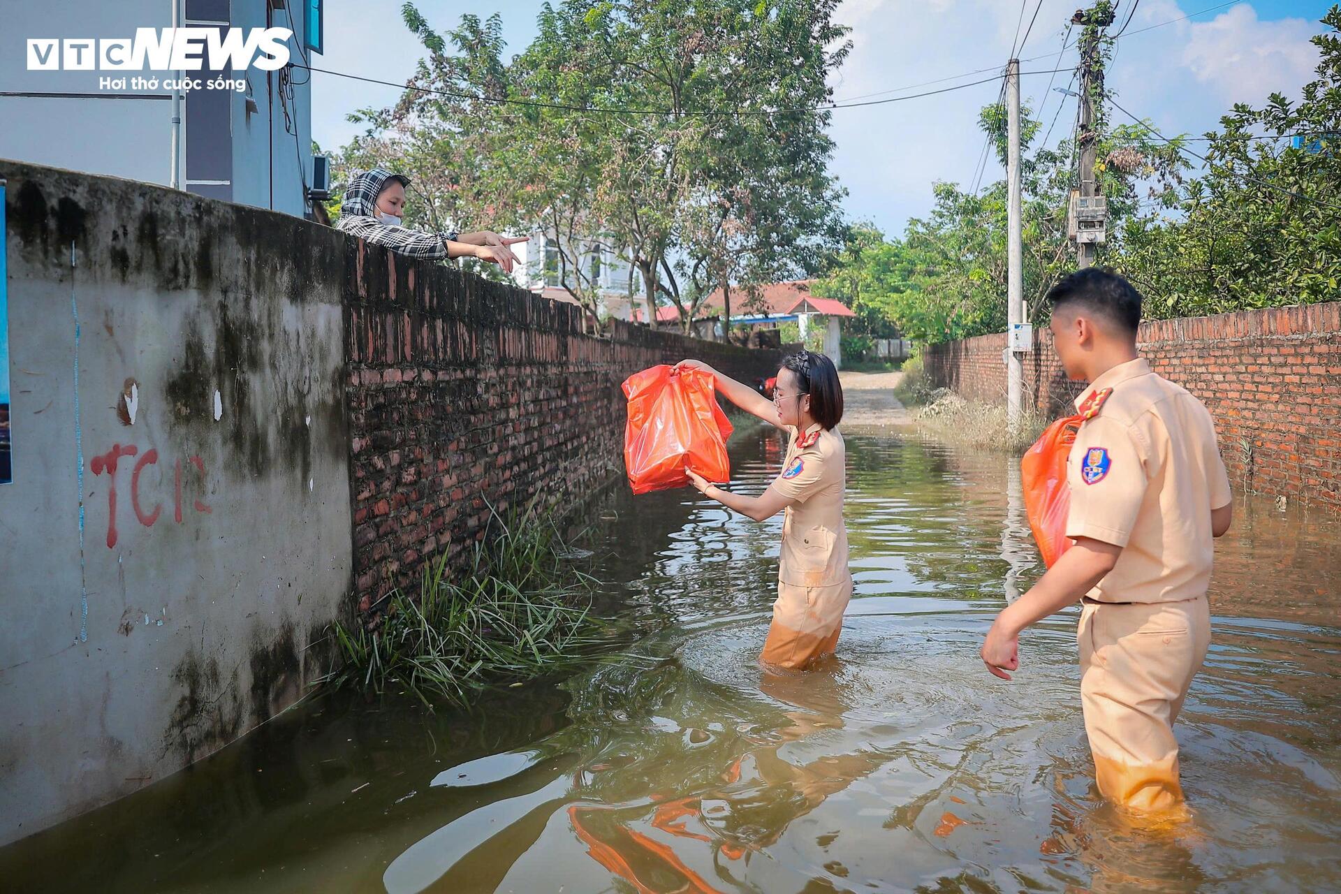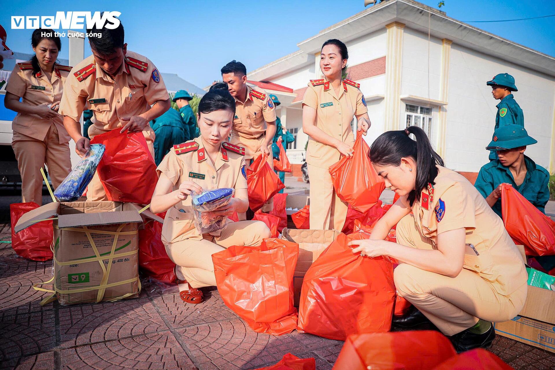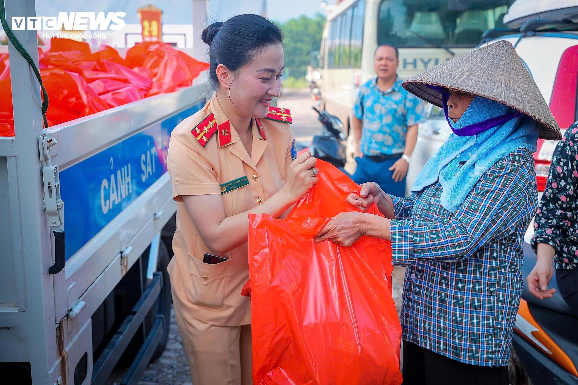 Đại úy Nguyễn Thị Hồng Nhung, Chủ tịch Hội Phụ nữ Phòng CSGT Hà Nội cho biết: “Ngoài cứu trợ khẩn cấp, điều người dân cần nhất là sự sẻ chia, đồng hành. Chúng tôi đã vận động hội viên quyên góp, phân loại, đóng gói vật dụng, thuốc men, trao tận tay người dân vùng ngập”.