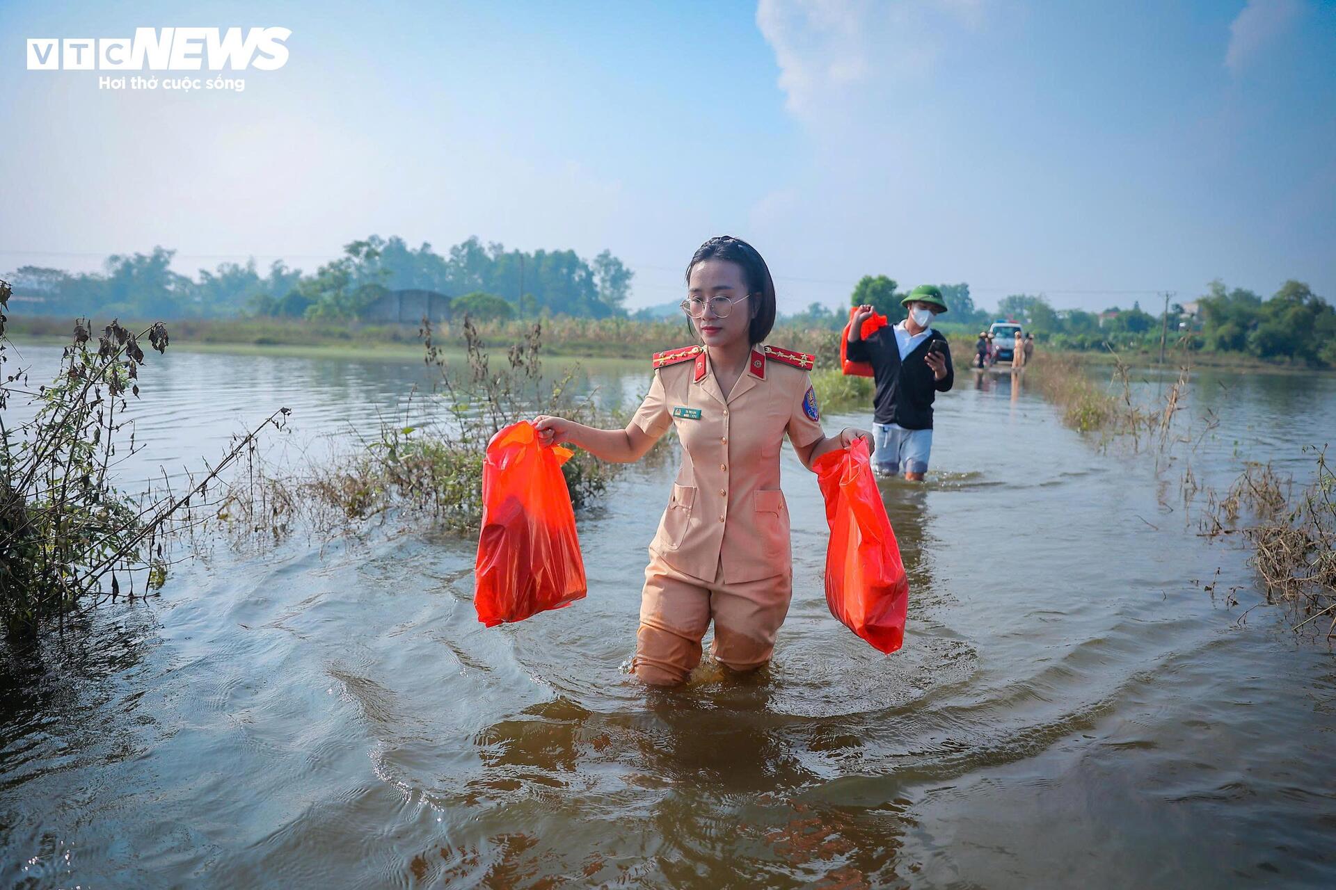 CSGT lội nước, mang quà và nhu yếu phẩm đến tận tay người dân.