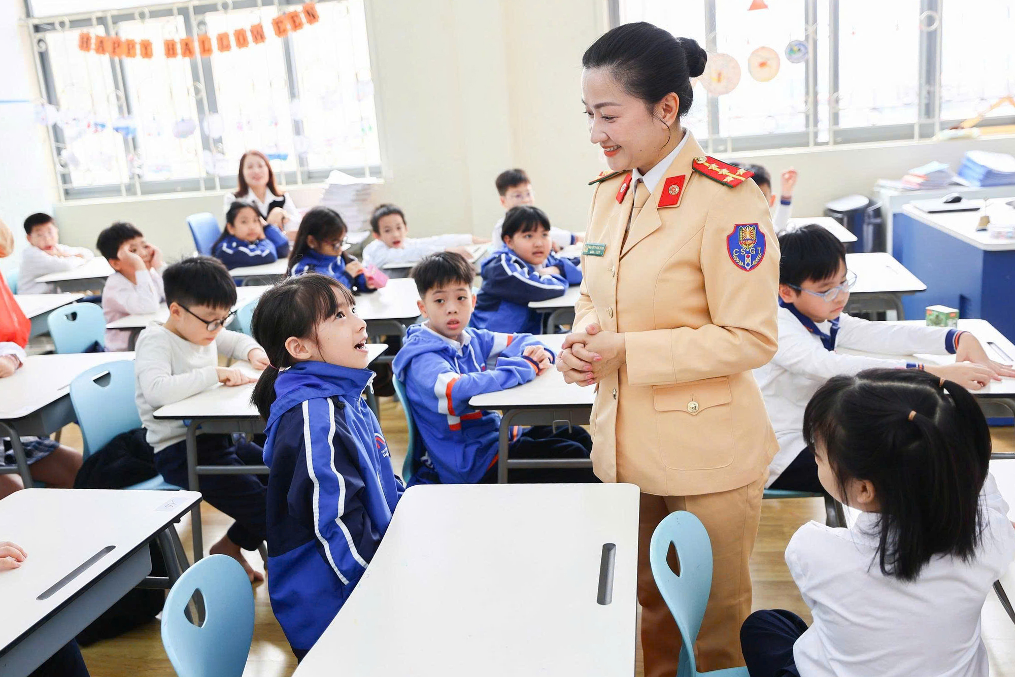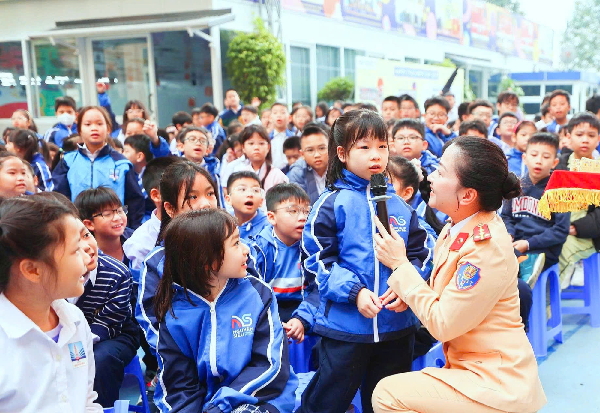 Chương trình không chỉ tạo hứng thú cho học sinh mà còn giúp các em hiểu hơn về nhiệm vụ, trách nhiệm của lực lượng Cảnh sát giao thông trong bảo đảm trật tự, an toàn giao thông
