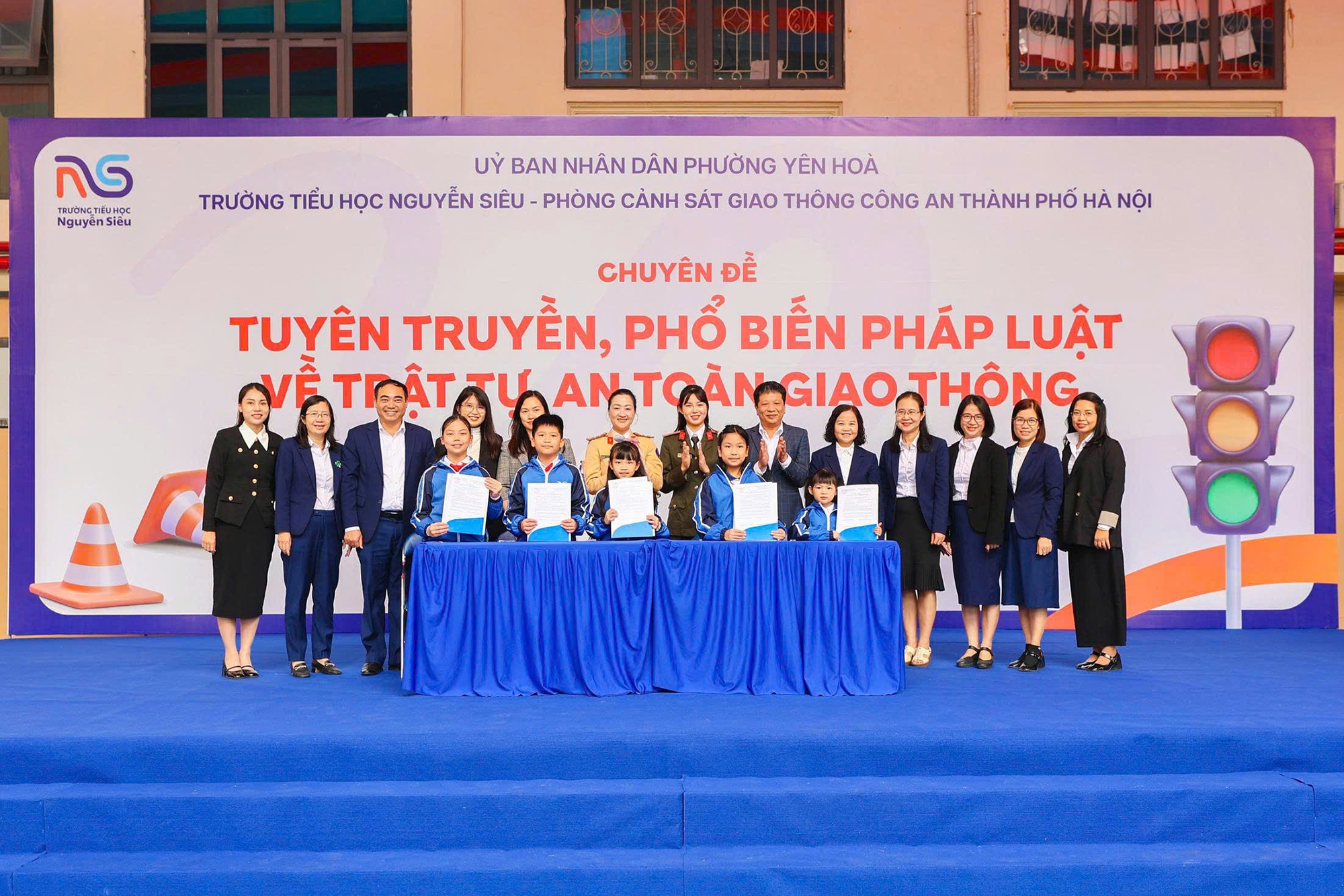 Tại buổi tuyên truyền, Hội phụ nữ Phòng Cảnh sát giao thông cùng học sinh, giáo viên và phụ huynh nhà trường đã ký cam kết không vi phạm luật giao thông