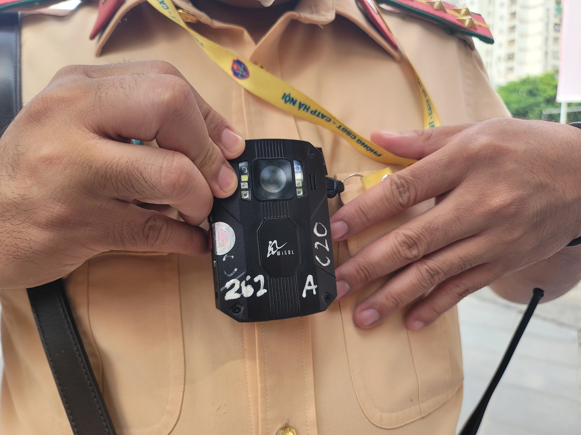 Lực lượng Cảnh sát giao thông sử dụng phương tiện ghi hình nhằm bảo đảm tính công khai, minh bạch. Ảnh: MH