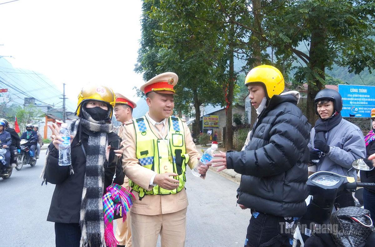 Đại úy Lục Cao Hiệp, Đội 7, Phòng CSGT Công an tỉnh Tuyên Quang cho biết: “Những ngày cao điểm nghỉ lễ, đơn vị tăng cường lực lượng tuần tra, kiểm soát, duy trì chốt tại các vị trí trọng điểm, vừa bảo đảm trật tự an toàn giao thông, vừa sẵn sàng hỗ trợ người dân, du khách khi gặp sự cố. Đồng thời, phát nước miễn phí, động viên, tiếp sức du khách trong hành trình du xuân”.