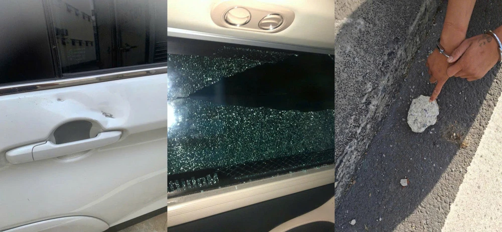 Các phương tiện bị hư hỏng do nhóm thanh thiếu niên ném đá khi lưu thông trên cao tốc Rạch Sỏi - Lộ Tẻ