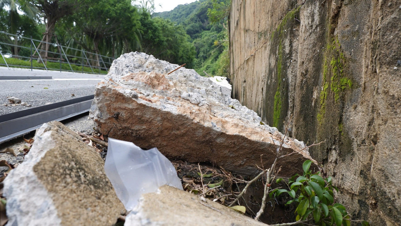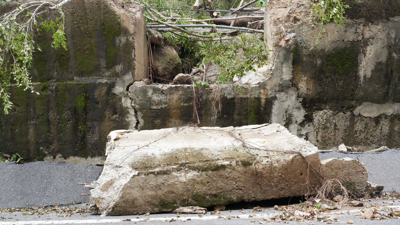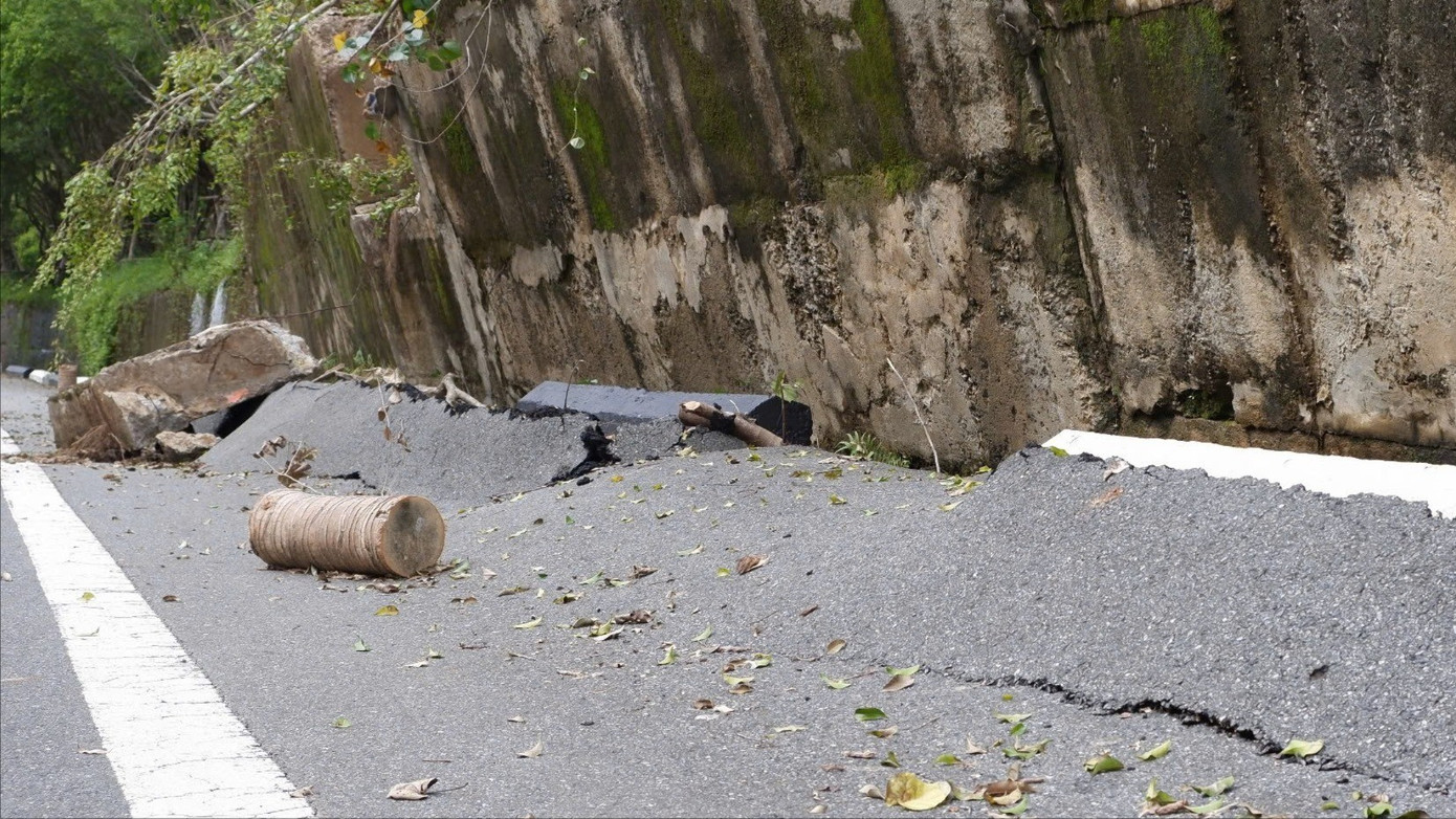 Cả một tảng bê tông lớn đổ sập xuống đường. Ban Quản lý bán đảo Sơn Trà và các bãi biển du lịch Đà Nẵng cho hay, một số khu vực trên bán đảo Sơn Trà, đã bị sạt lở do mưa bão. Trong đó, tuyến đường Yết Kiêu đến Đỉnh Bàn Cờ, có 1 điểm sạt lở, cách Hạt kiểm lâm khoảng 100 mét. Tuyến Đỉnh Bàn Cờ – InterContinental Đà Nẵng có 1 điểm đất trôi lên đường. Tuyến Tiên Sa - Suối Ôm - Đỉnh Bàn Cờ có 2 điểm sạt lở đất đá (cách Suối Ôm 500m) hướng về Đỉnh Bàn Cờ...