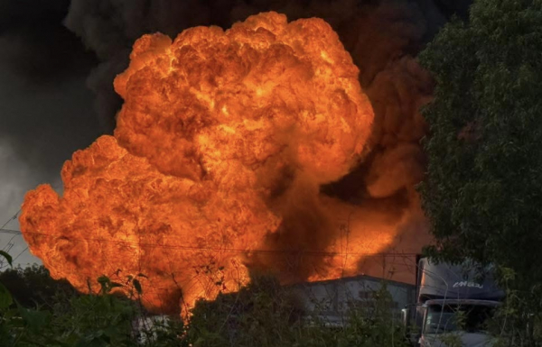 Trong lúc cháy nhiều tiếng nổ vang lên và lửa tạo thành những quả cầu khổng lồ.
