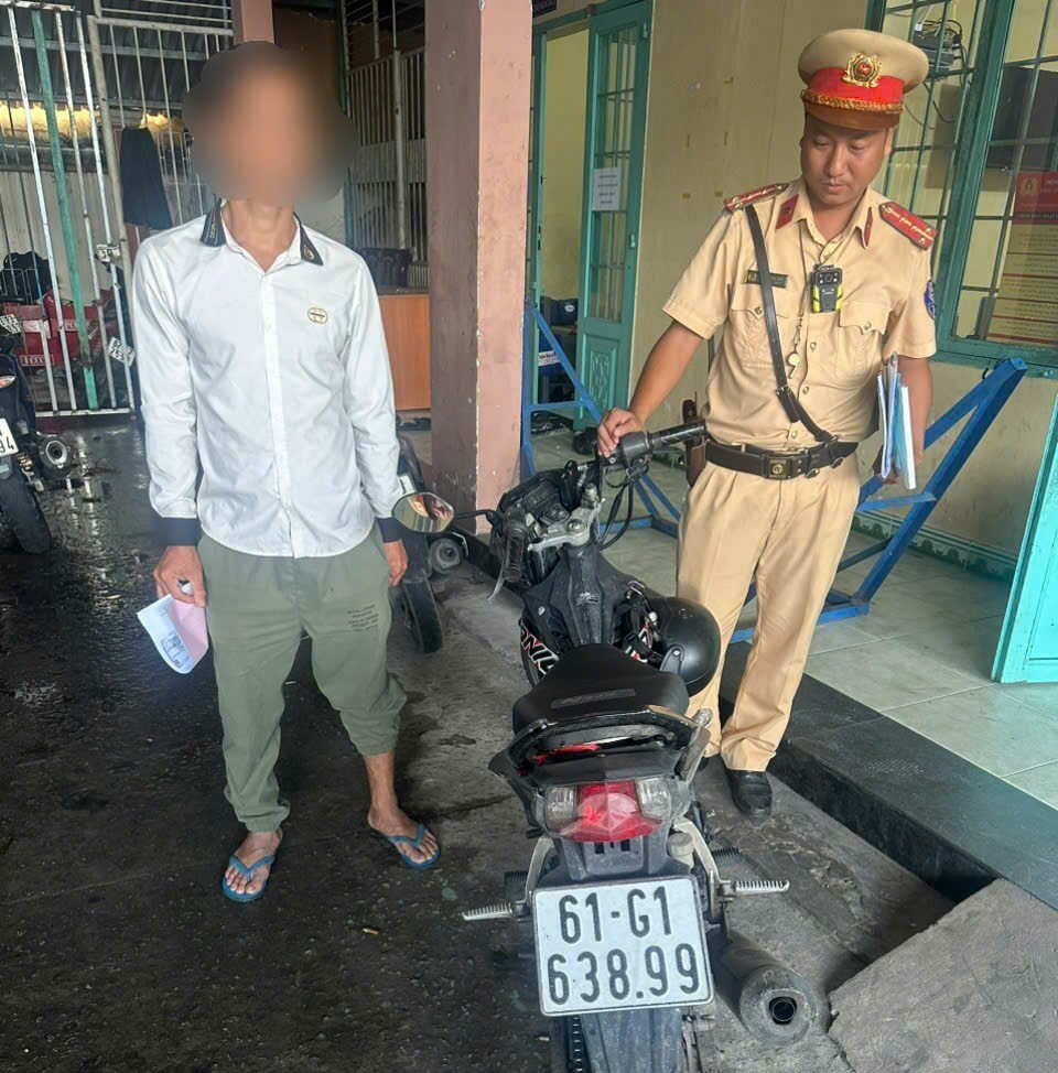Lực lượng chức năng xác định người điều khiển xe máy có hành vi nêu trên là T.T.V. (SN 1991, ngụ phường Long Nguyên, TPHCM) nên mời đến trụ sở làm việc.