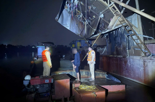 Khoảng 1h50 cùng ngày, tổ công tác phát hiện một tàu hút mang số kiểm soát VR16044082 (gắn thiết bị khai thác cát), đang hút cát từ lòng sông bơm lên khoang chứa hàng của phương tiện thủy VP-1392. Lực lượng chức năng đã yêu cầu những người trên hai phương tiện dừng ngay hoạt động.