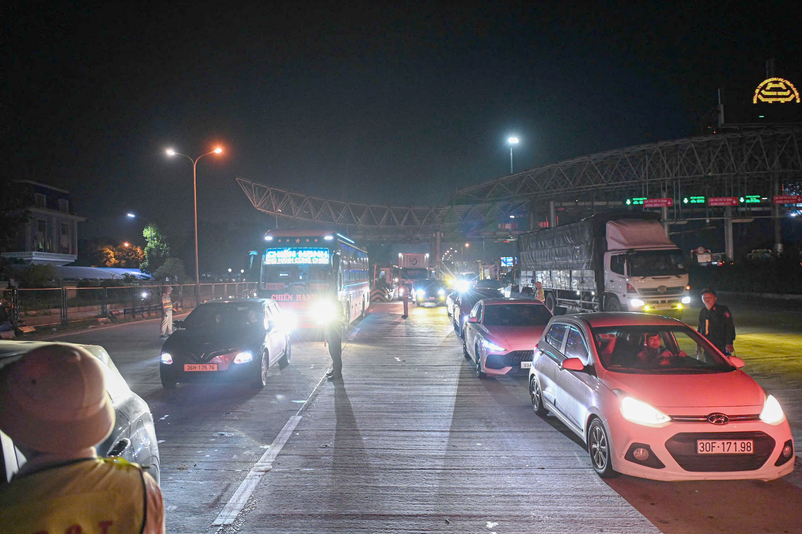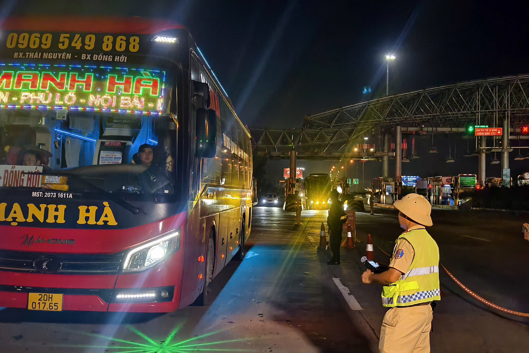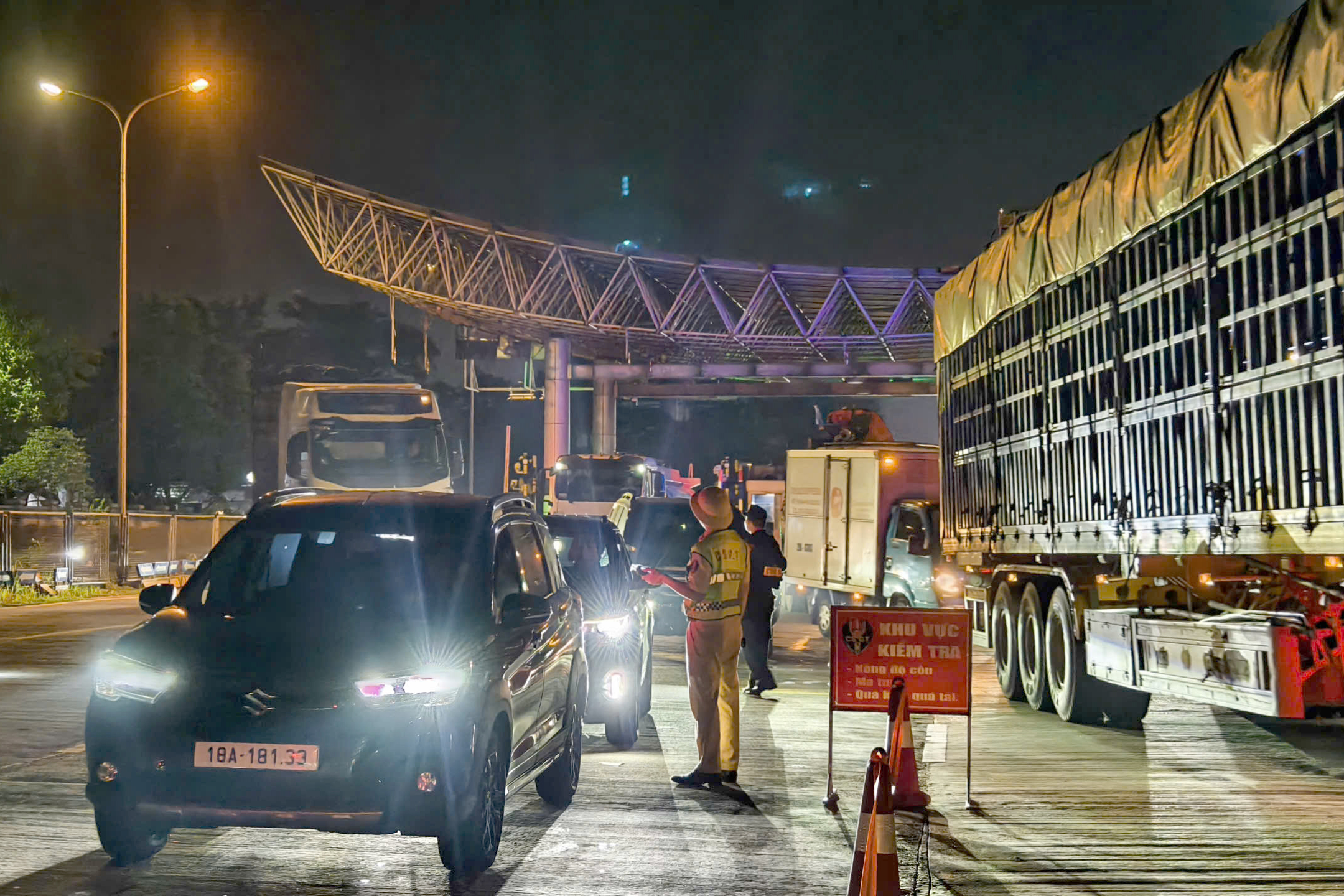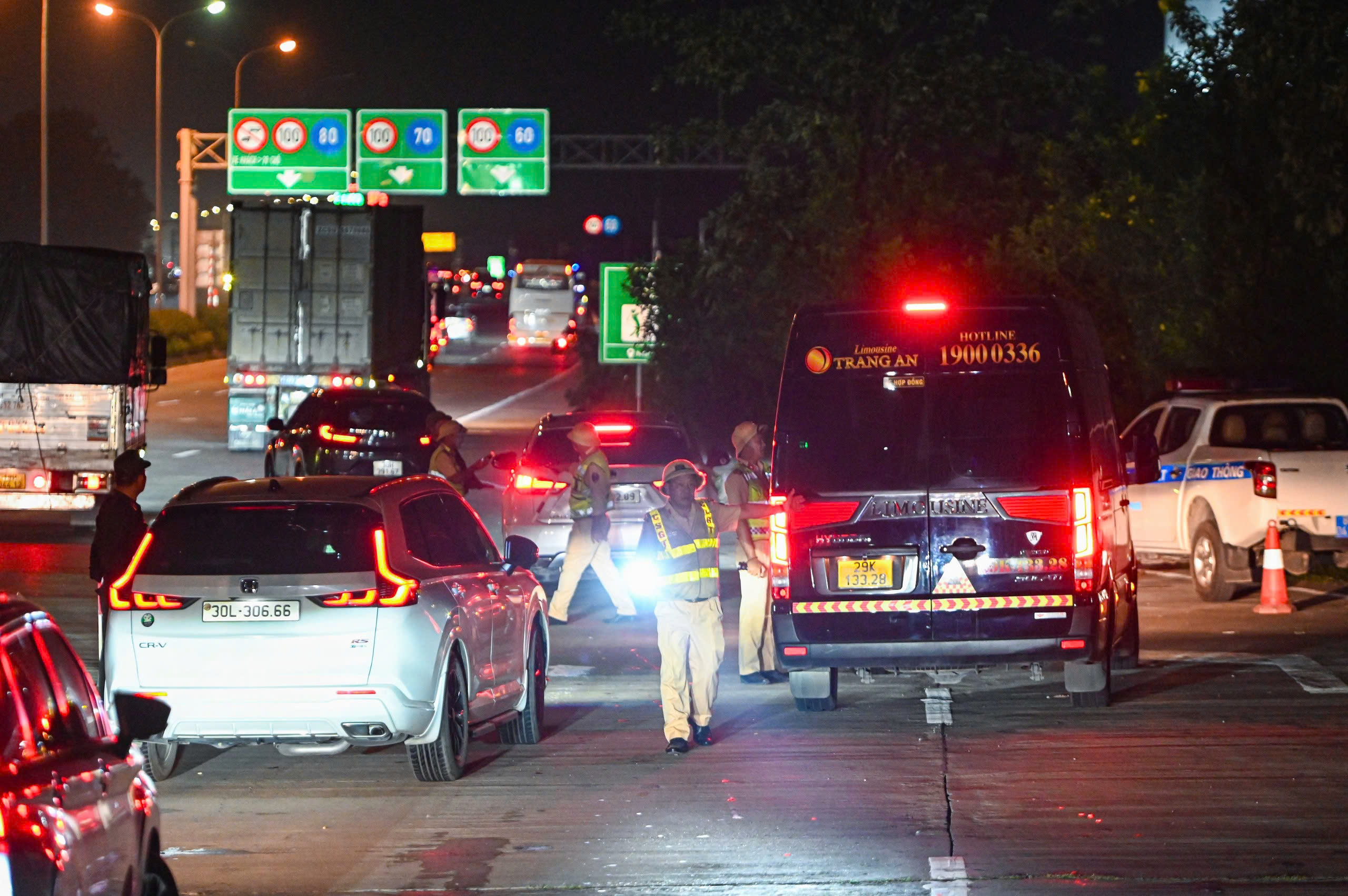 Tại trạm thu phí đầu cao tốc Pháp Vân - Cầu Giẽ (hướng Hà Nội đi Ninh Bình), tổ công tác của Đội CSGT đường bộ cao tốc số 3 thuộc Cục CSGT và lực lượng cảnh sát cơ động lập chốt kiểm soát. Tại đây, cảnh sát kiểm tra toàn bộ xe trước khi vào cao tốc.