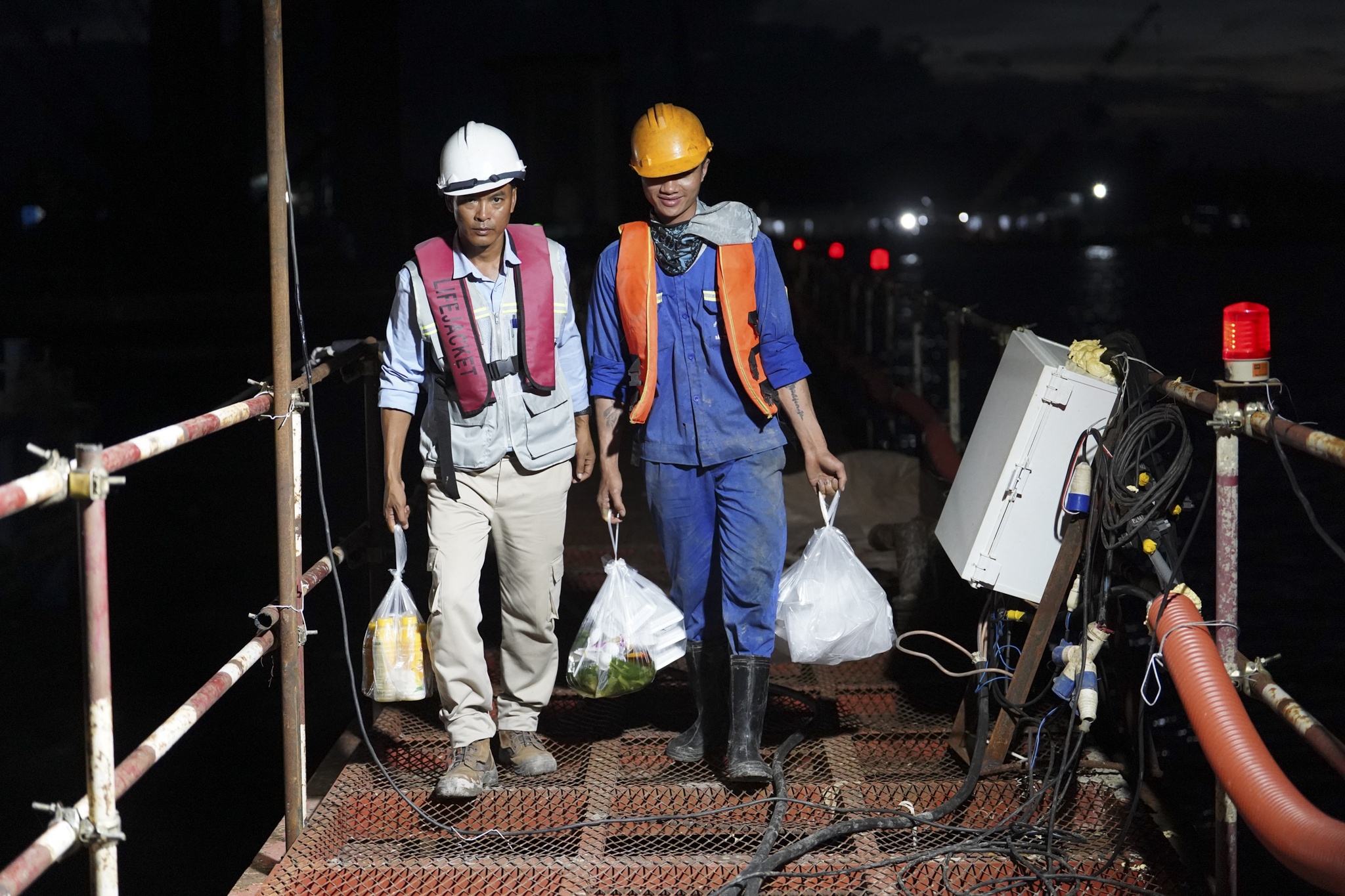 Hơn 300 kỹ sư, công nhân được huy động làm việc liên tục để bảo đảm tiến độ. Mỗi đội đều chủ động bám sát lịch thủy triều, chuẩn bị đầy đủ vật liệu, thiết bị nhằm tận dụng tối đa từng khung giờ thi công thuận lợi trong ngày.