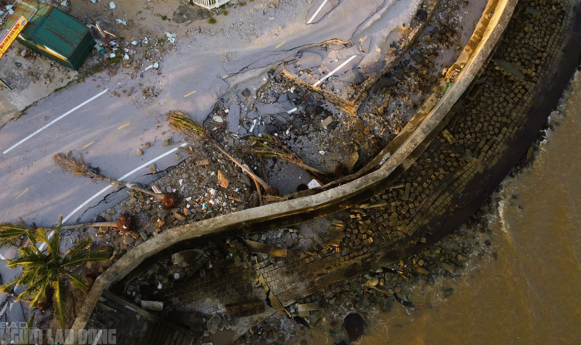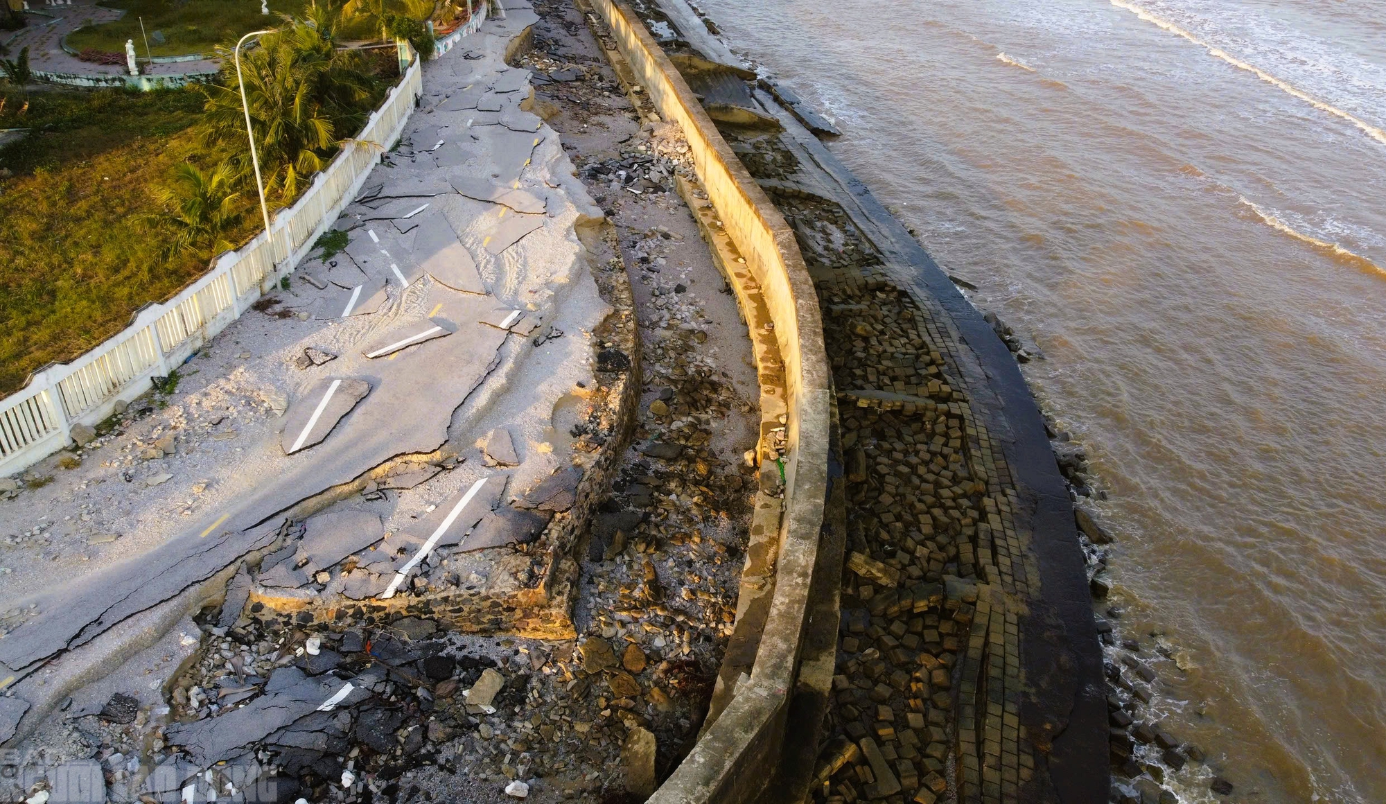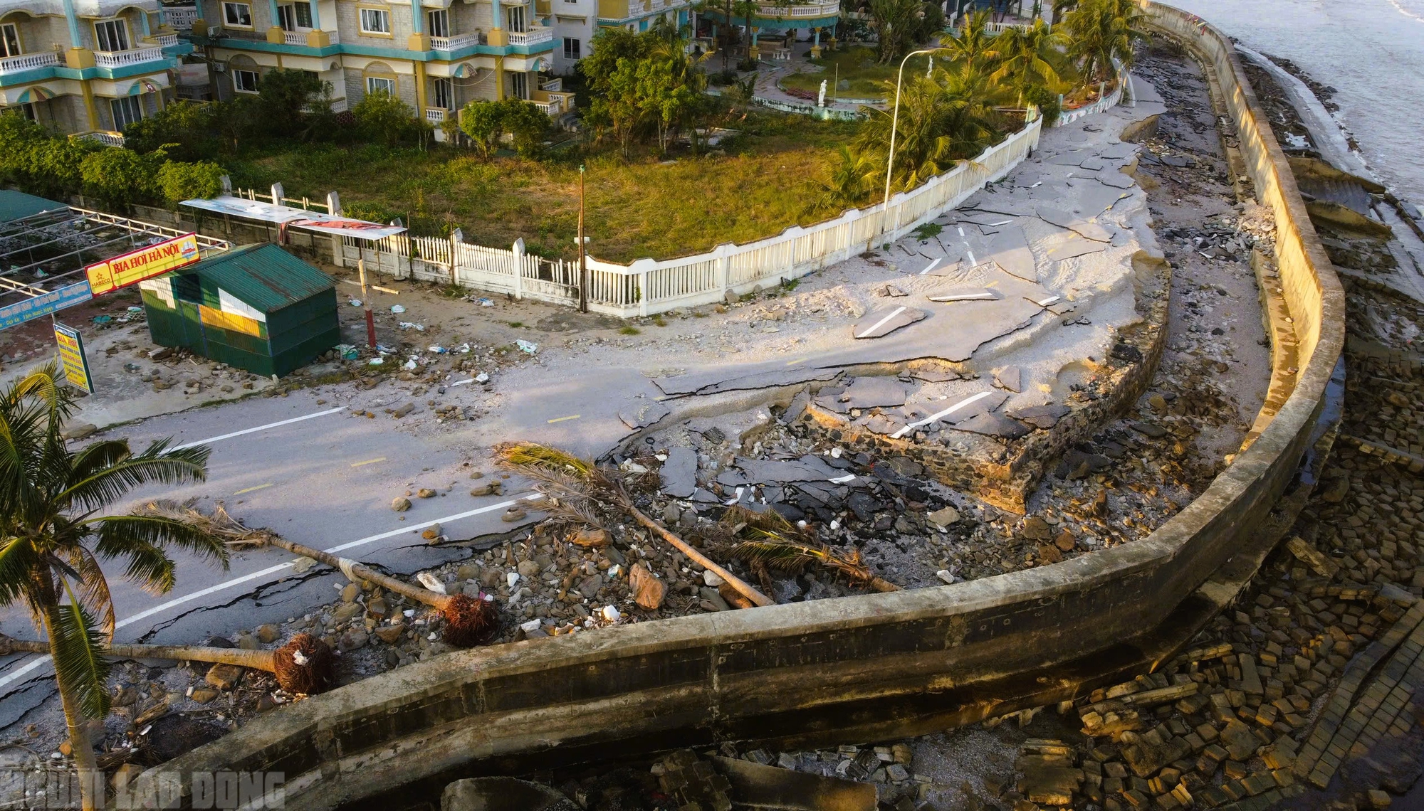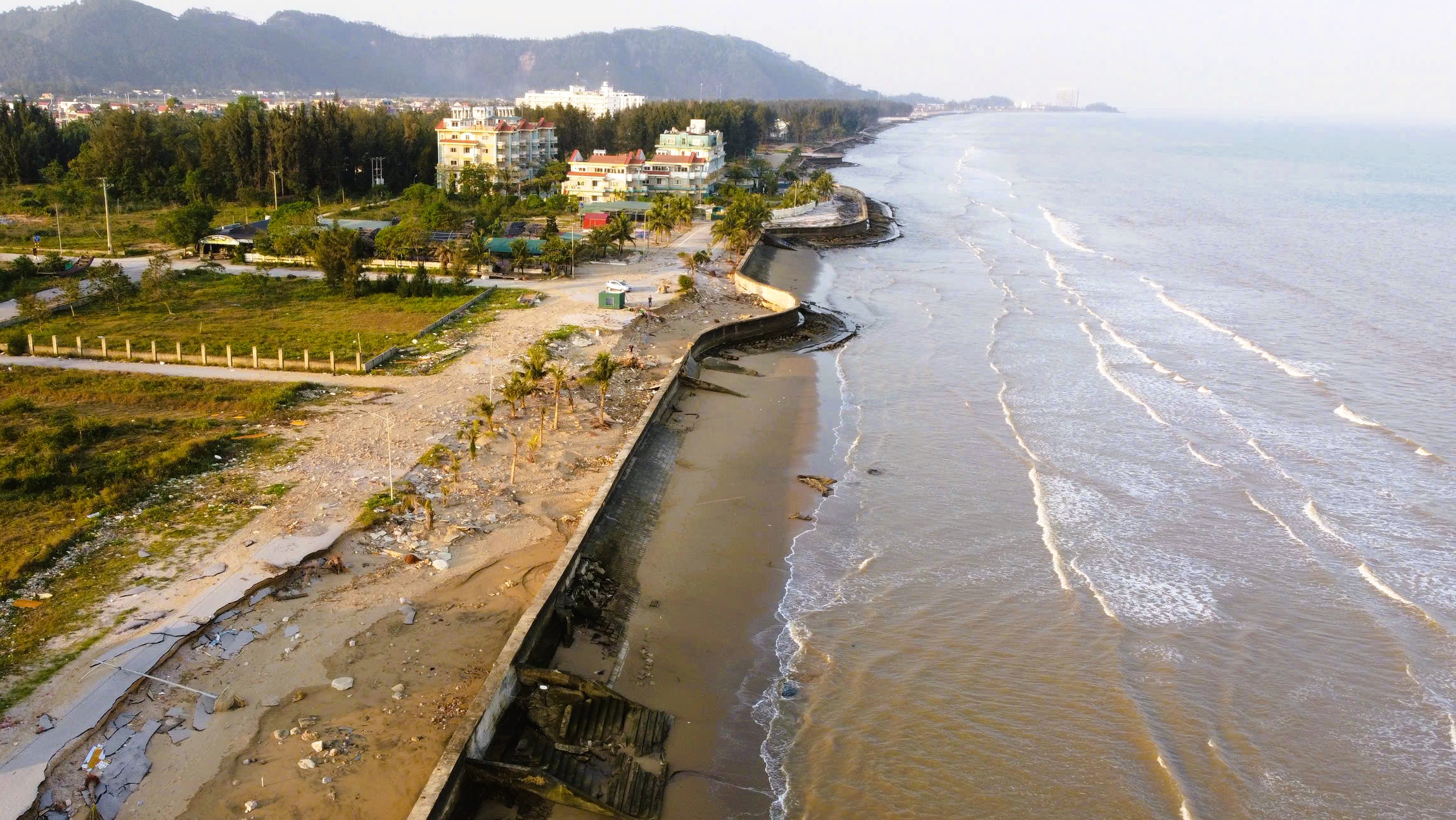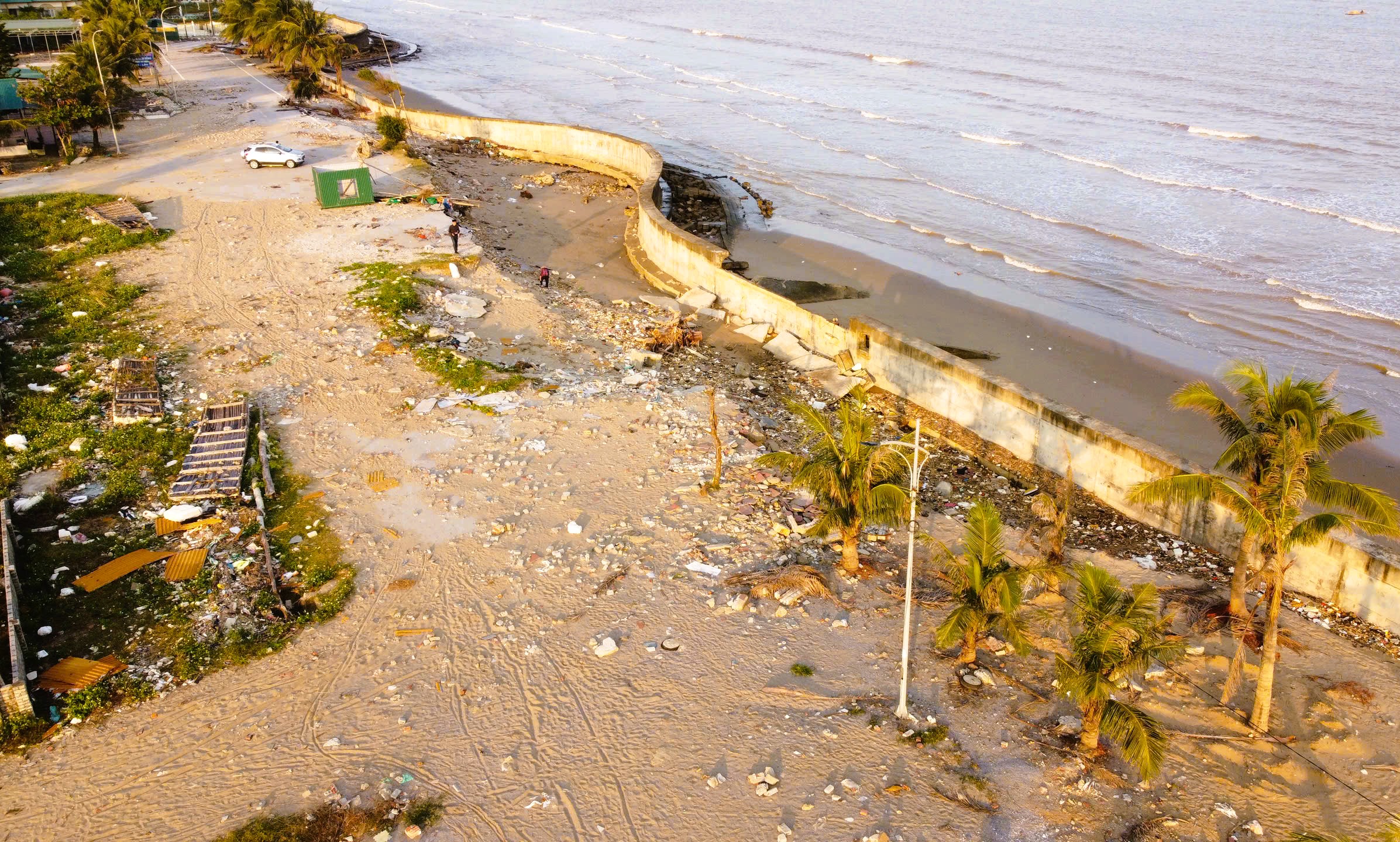 Hình ảnh bờ biển Hải Tiến - khu du lịch nổi tiếng Thanh Hóa bị bão tàn phá: