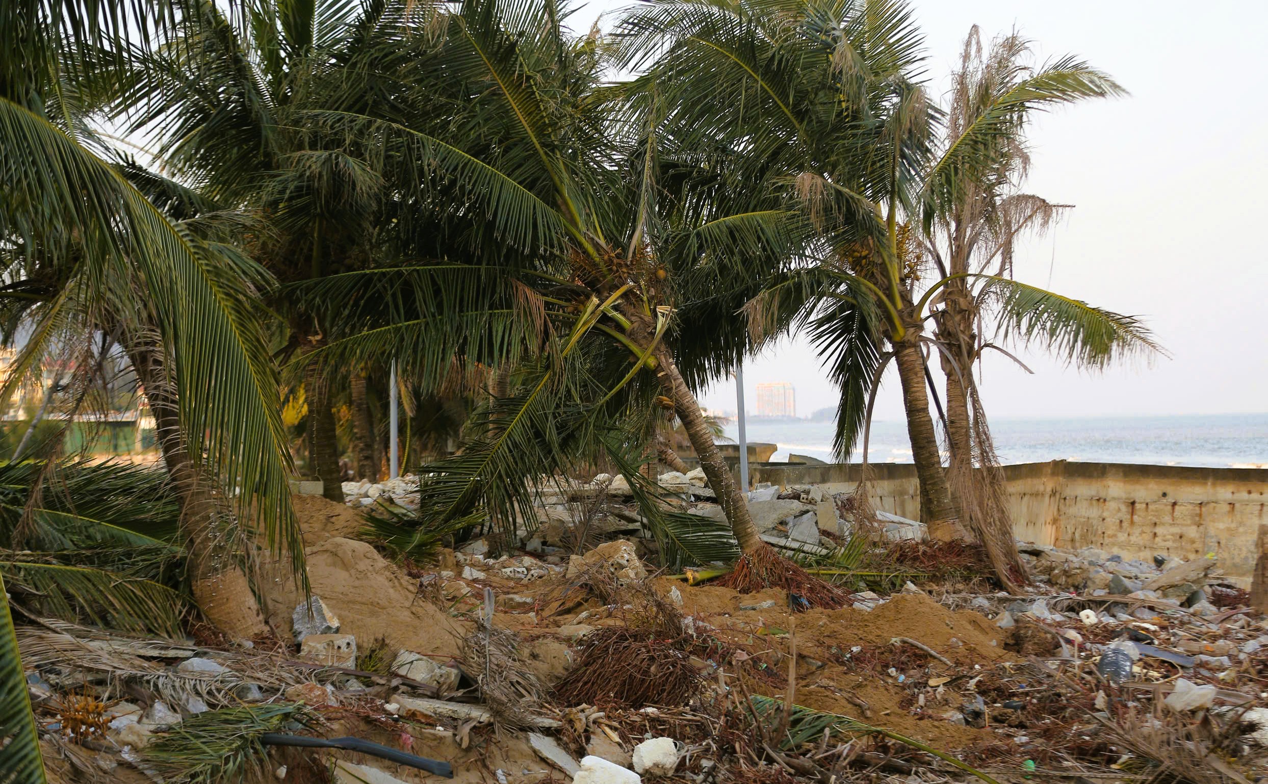 Dừa một loại cây thường được trồng nhiều tại các khu du lịch đổ ngổn ngang sau những cơn bão