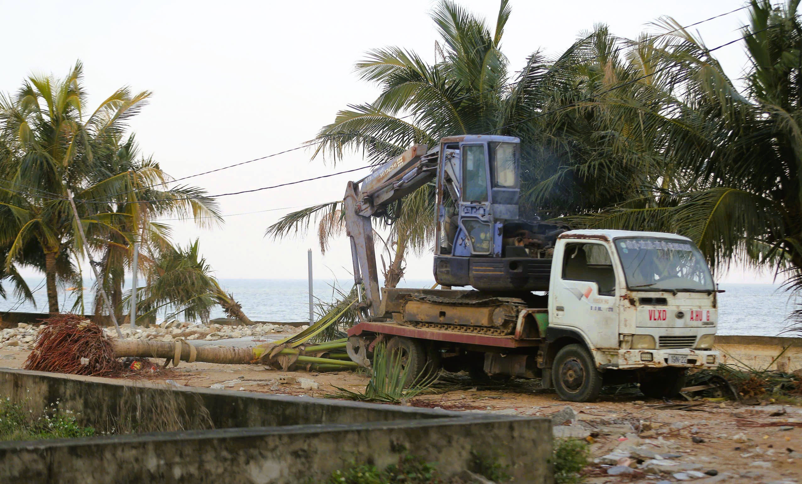 Khu vực bờ biển Hải Tiến trước bão là những hàng dừa xanh mướt, giờ như một bãi chiến trường