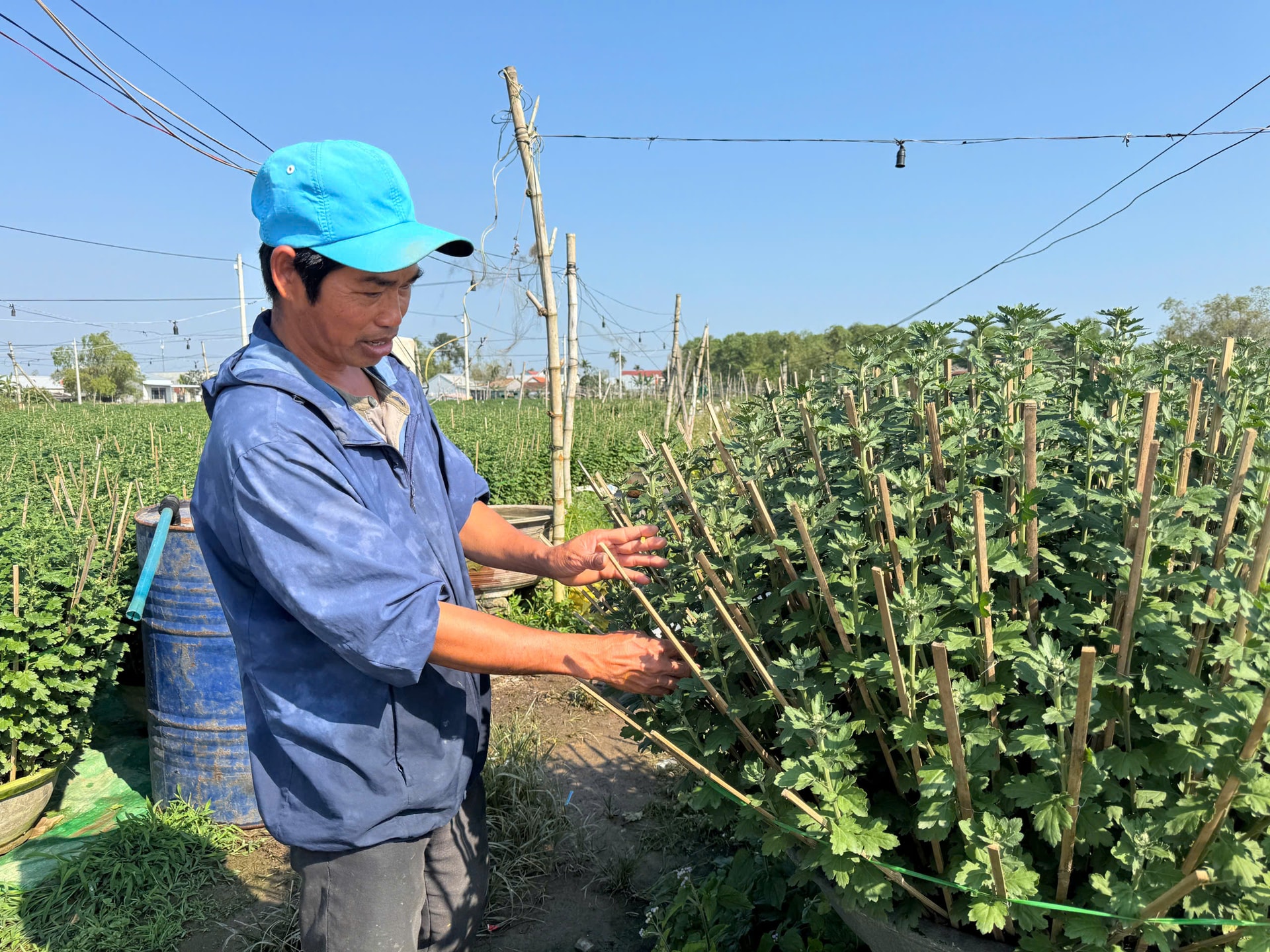 Vụ hoa Bính Ngọ năm nay, anh đầu tư hơn 1.000 chậu cúc, chủ yếu là cúc đóa Đà Lạt và cúc Pha lê – những loại hoa được thị trường ưa chuộng nhờ dáng đẹp, bông to, lâu tàn. Xuống giống từ tháng 7 dương lịch, nhưng chuỗi 4 đợt lũ lớn liên tiếp trong năm đã khiến vườn hoa của gia đình anh thiệt hại hơn 20%.