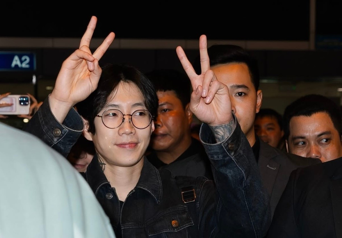 Khán giả không nhận ra Jay Park với hình ảnh thư sinh, mang ba lô và đeo kính tròn. Anh liên tục tương tác, cúi chào trước sự chào đón của người hâm mộ. Video khán giả vây kín nam rapper đang được chia sẻ mạnh. Với phong cách mạnh mẽ và thân hình săn chắc, fan mong muốn Jay Park trình diễn không thua kém Bi Rain tối 15/11.
