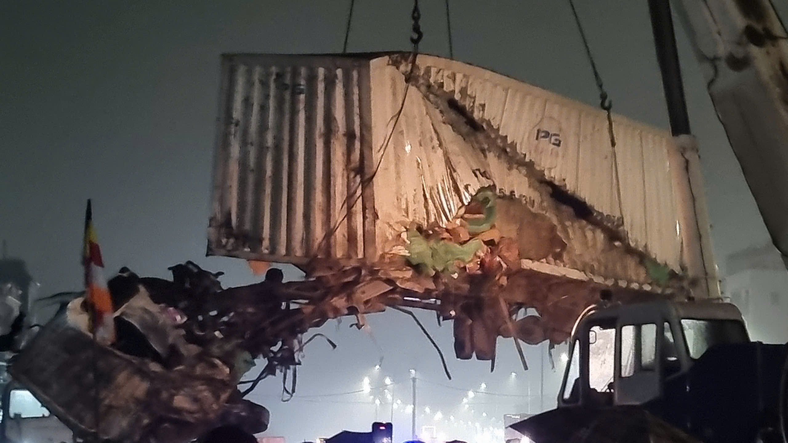 Lực lượng cứu hộ đã phải sử dụng máy cắt để đưa một thi thể trong cabin xe tải ra ngoài. Ảnh Thạnh Mộc.