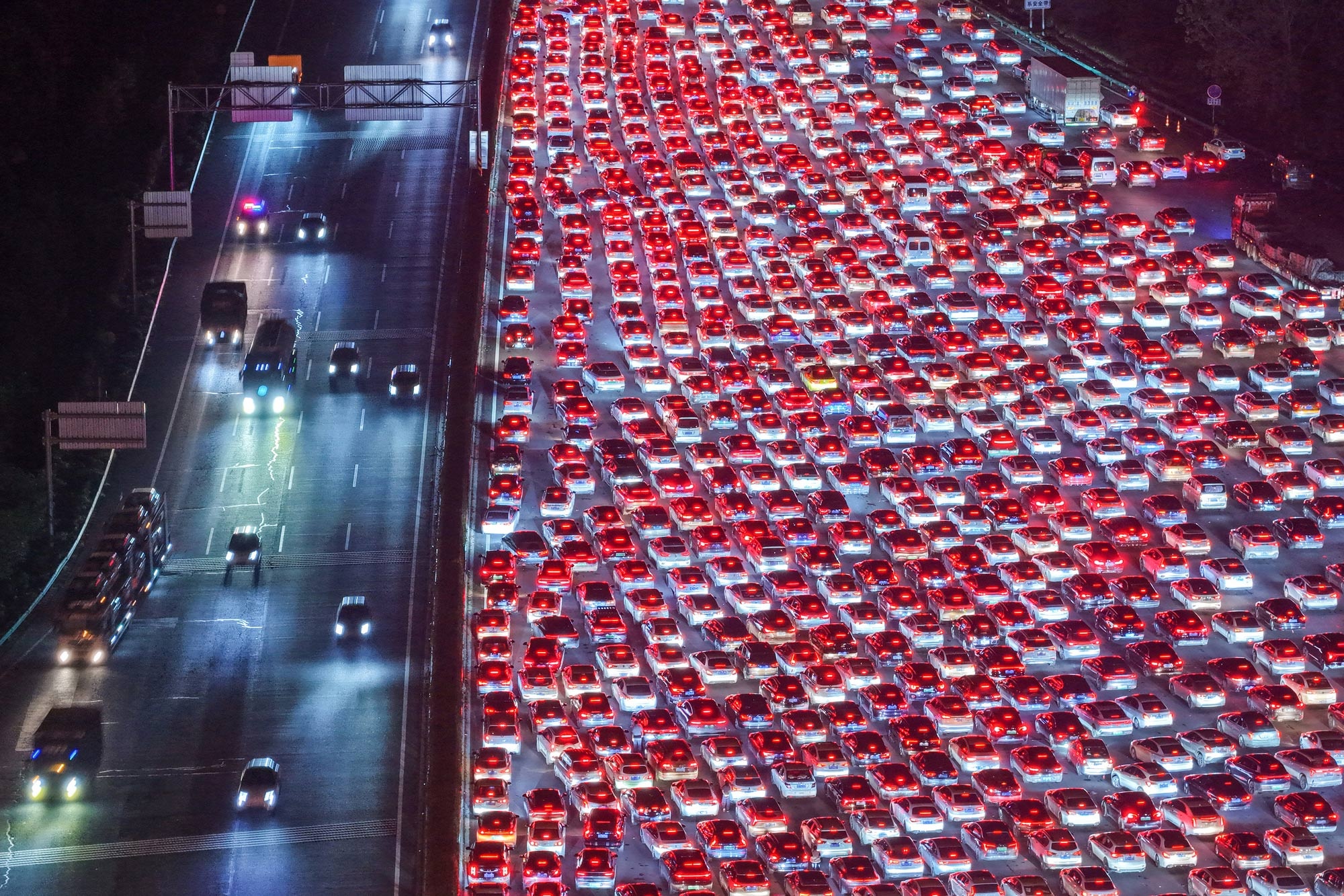 Những hình ảnh chụp từ trên cao cho thấy hàng nghìn ôtô nối đuôi nhau tại trạm thu phí Wuzhuang, thành phố Chuzhou (tỉnh An Huy, miền Đông Trung Quốc) vào ngày 7/10, khi kỳ nghỉ lễ Quốc khánh và Trung Thu kéo dài 8 ngày khép lại.