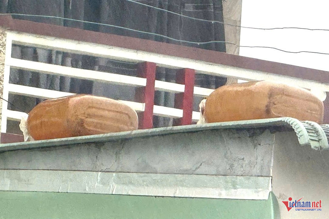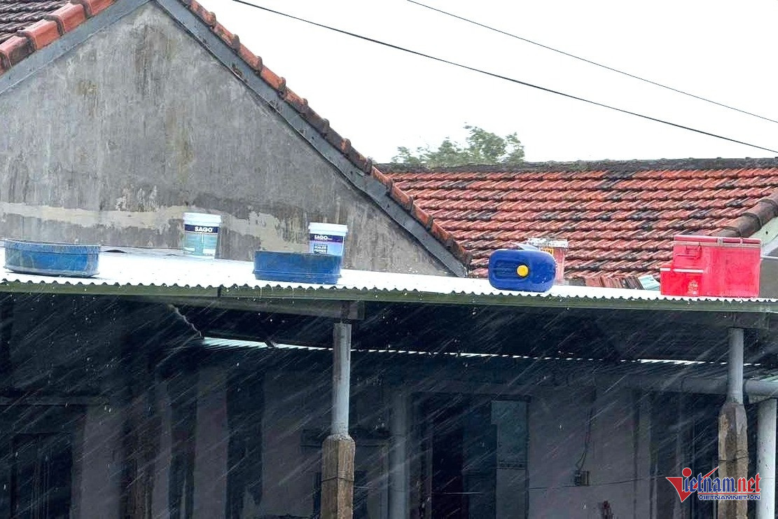Hình ảnh ghi nhận tại gia đình bà Nguyễn Thị Thu Sa. Họ dùng thùng xốp đổ nước đặt trên mái nhà. Ảnh: Hải Dương