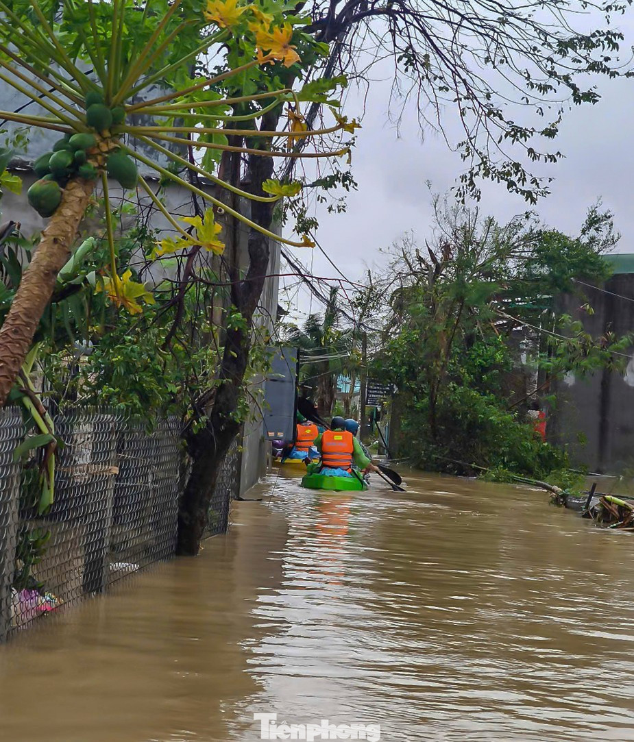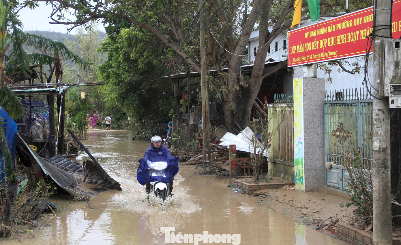 Ở phường Quy Nhơn Bắc và các khu vực lân cận, nước rút chậm tại các vùng trũng khiến cuộc sống người dân còn đảo lộn. Ảnh: Trương Định.