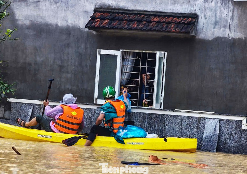 Các lực lượng chức năng luôn kề vai sát cánh với người dân những ngày lũ.