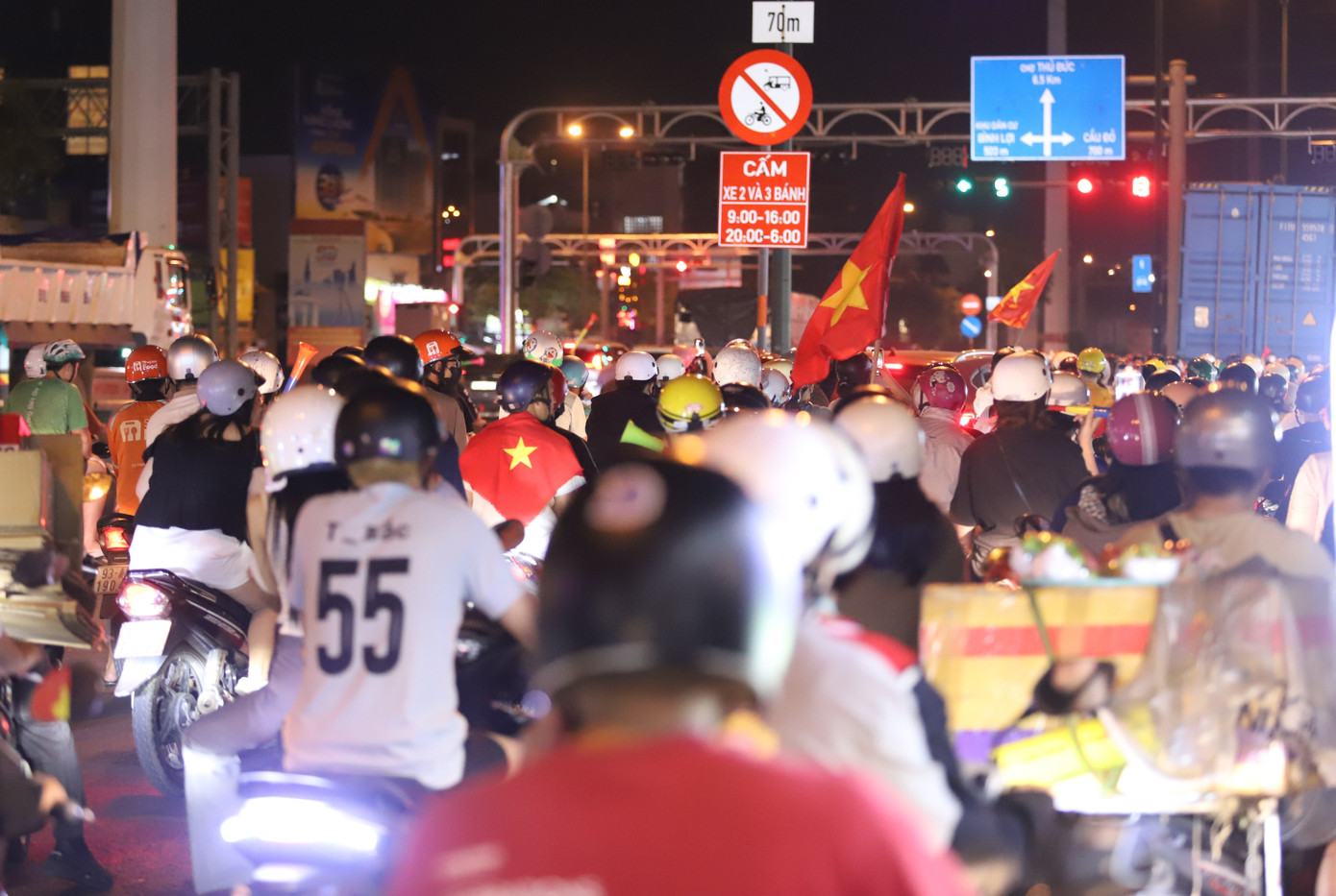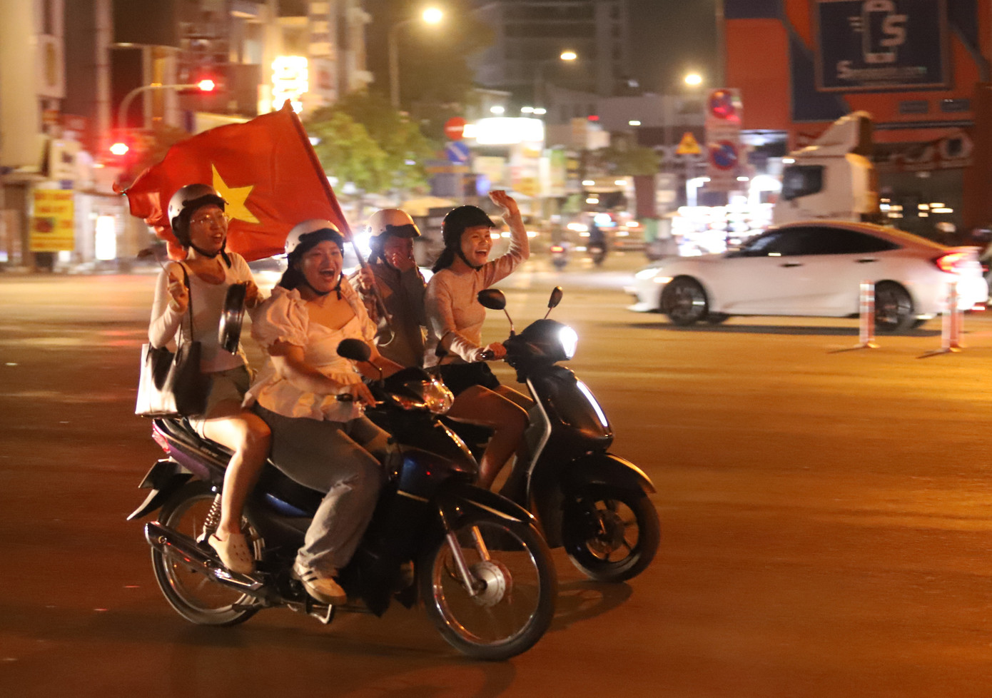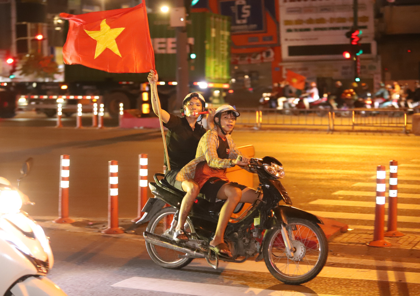 Không khí cuồng nhiệt trên đường phố TPHCM sau chiến thắng của tuyển Việt Nam.