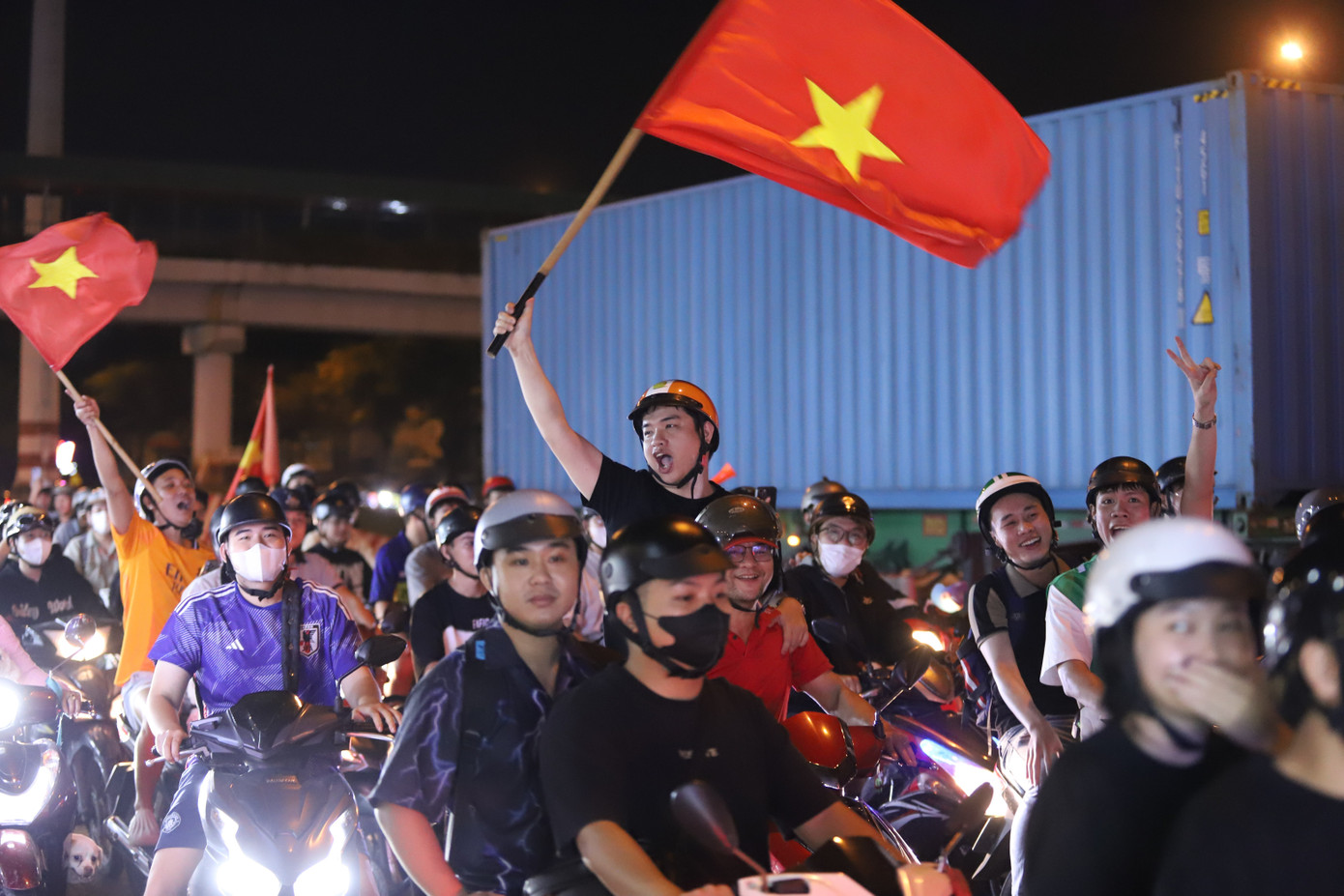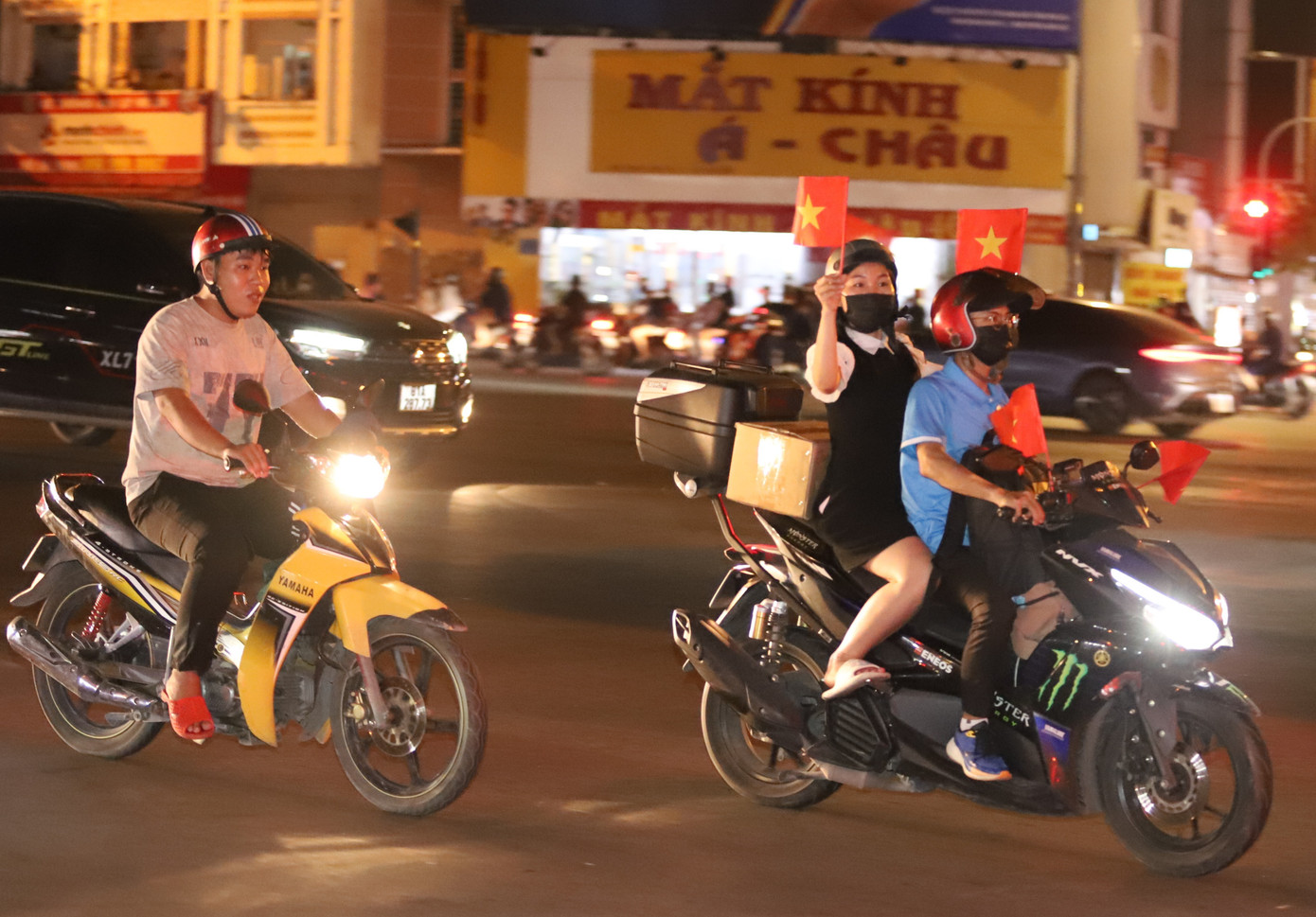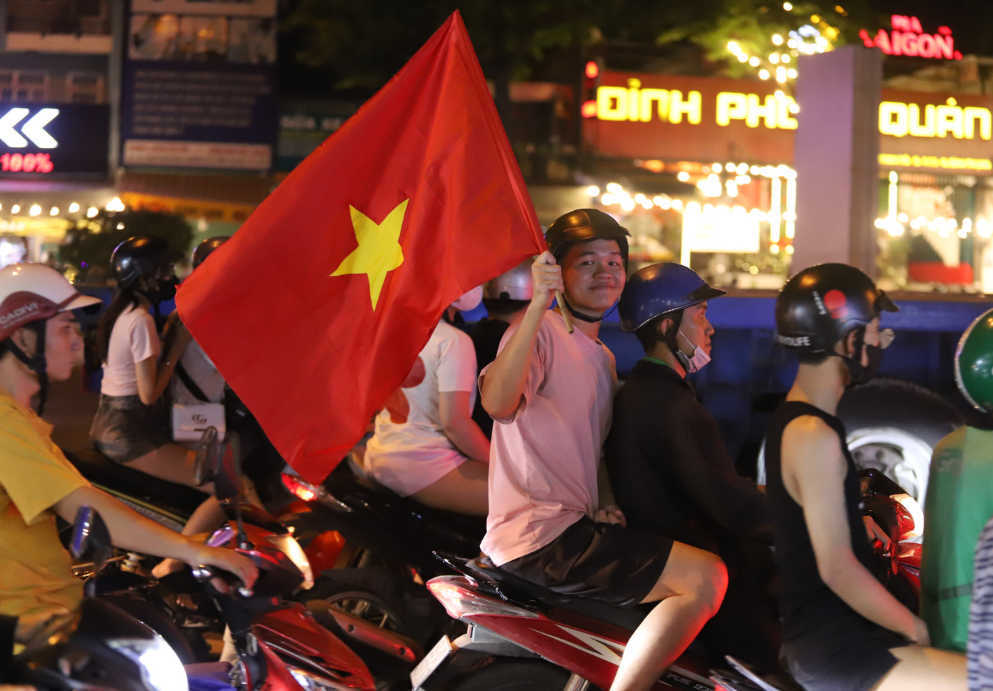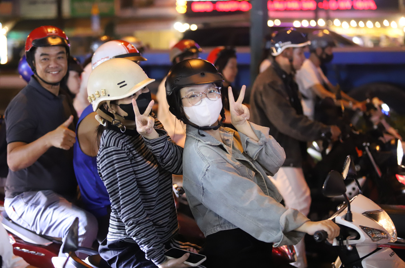 Không khí cuồng nhiệt trên đường phố TPHCM sau chiến thắng của tuyển Việt Nam.