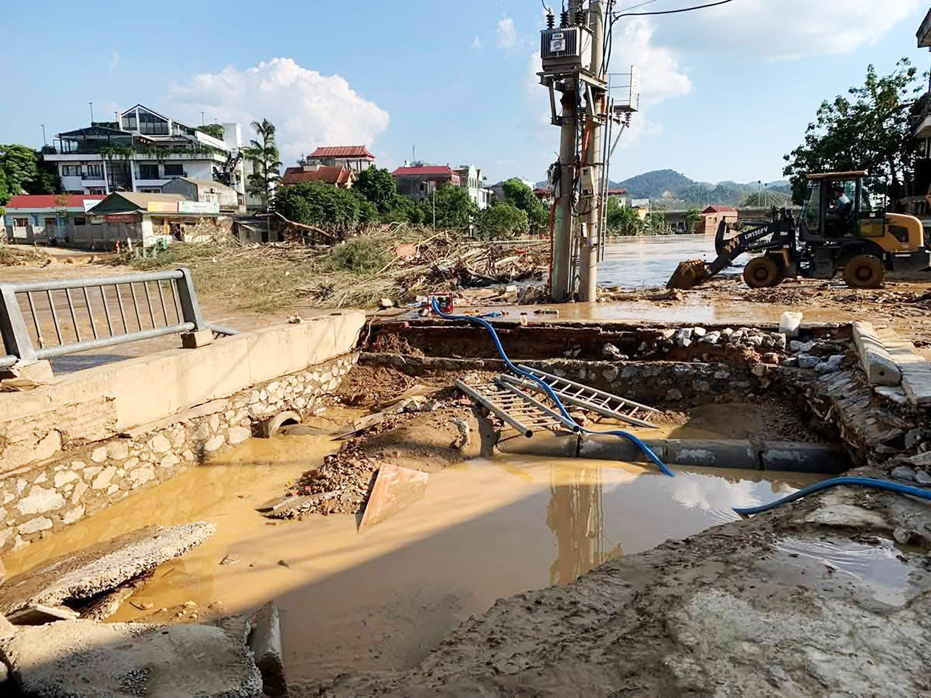 Hệ thống hạ tầng của tỉnh Cao Bằng bị thiệt hại nặng nề. Ảnh: Hà Cương