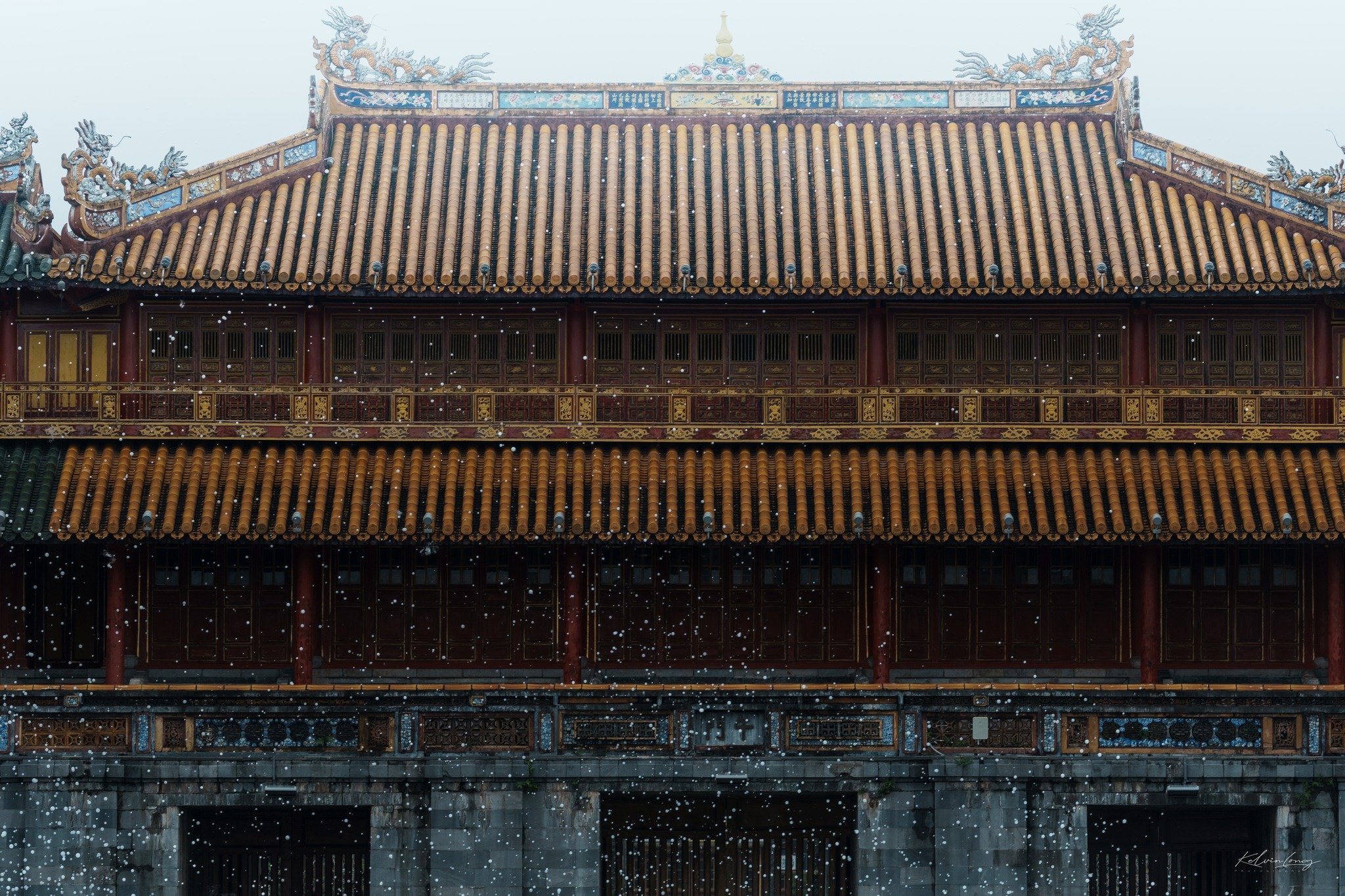 Khung cảnh "tuyết rơi" ở Hoàng thành Huế thu hút sự quan tâm của cộng đồng mạng. Ảnh: Kelvin Long.
