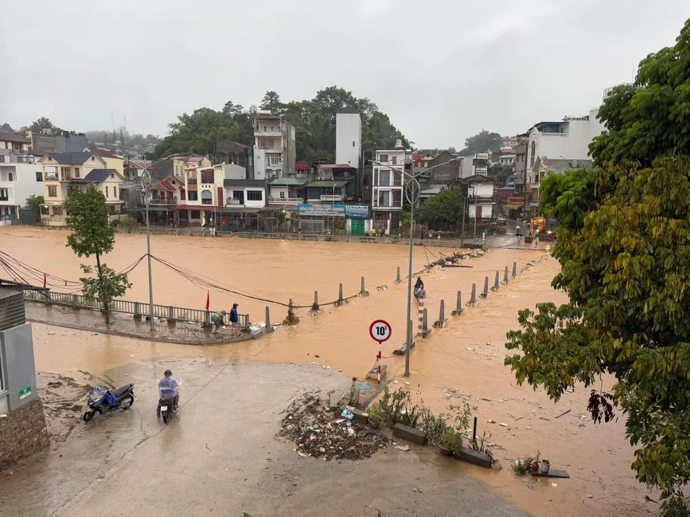 Mưa lớn gây ngập tại nhiều nơi tại Cao Bằng. Ảnh: CTV