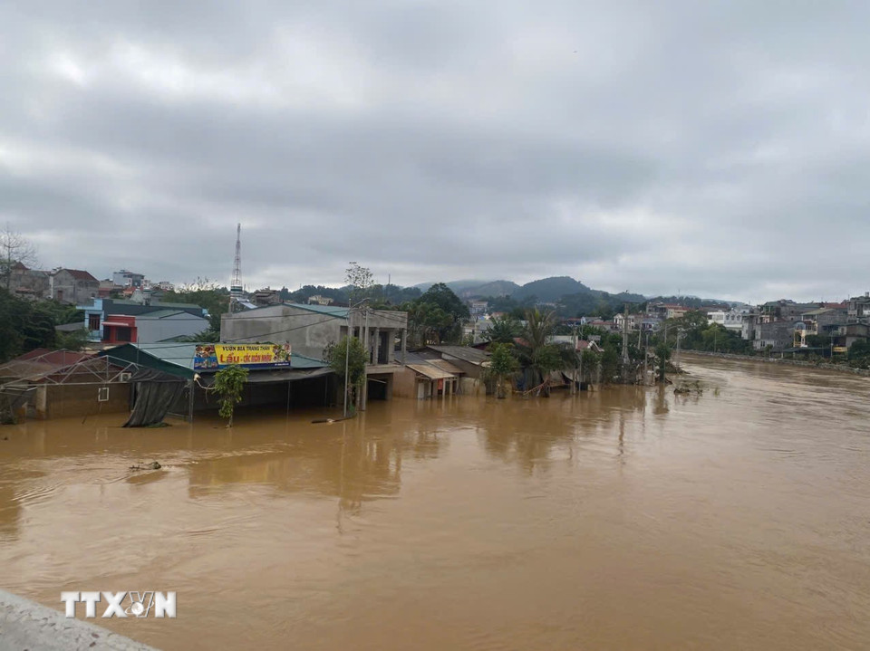Tại một số khu vực gần bờ kè Sông Hiến, nhiều hộ dân vẫn chưa thể về nhà vì lũ chưa rút hết. (Ảnh: TTXVN)