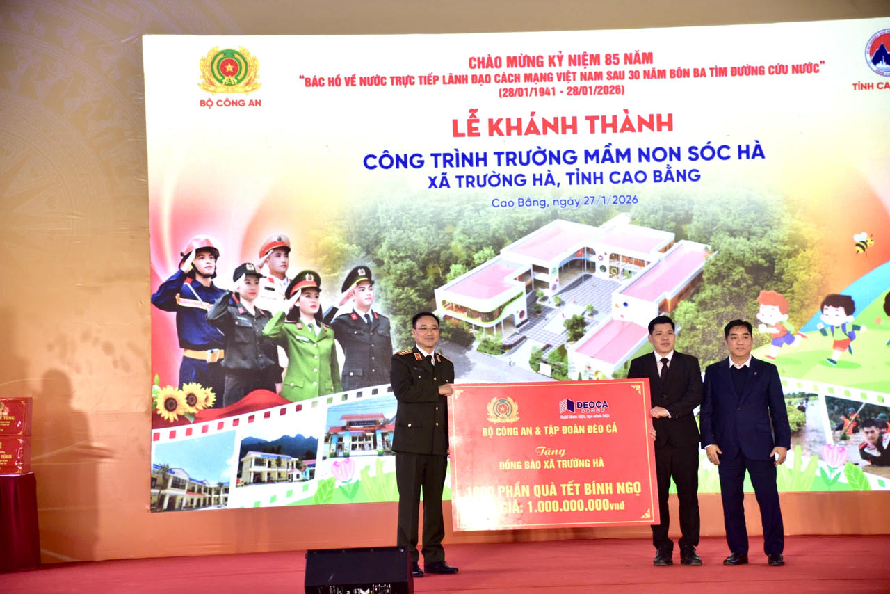 Buổi lễ khánh thành càng thêm phần ý nghĩa khi diễn ra ngay trước thềm Tết Nguyên đán Bính Ngọ 2026. Nhân dịp này, Bộ Công an và Tập đoàn Đèo Cả đã trao tặng 1.000 suất quà Tết cho học sinh và nhân dân xã Trường Hà, thể hiện nghĩa tình, góp phần giúp bà con vùng cao đón một cái Tết ấm no, sum vầy.