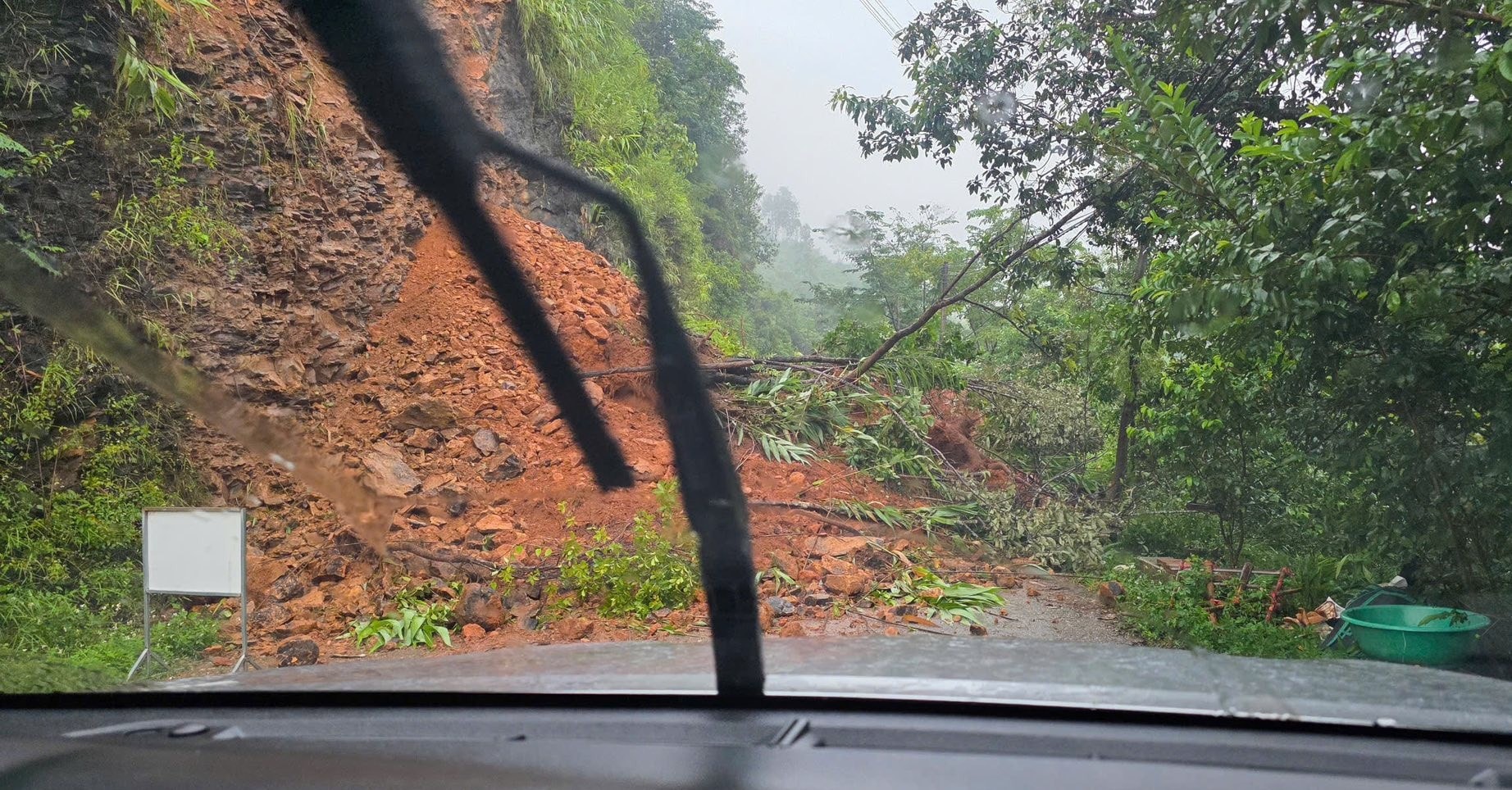 Tình trạng sạt lở cũng xảy ra trên nhiều tuyến đường qua tỉnh Cao Bằng. Ảnh: CSGT cung cấp.