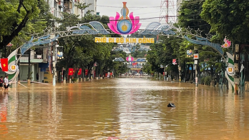 Phố đi bộ Kim Đồng ngập sâu trong nước.