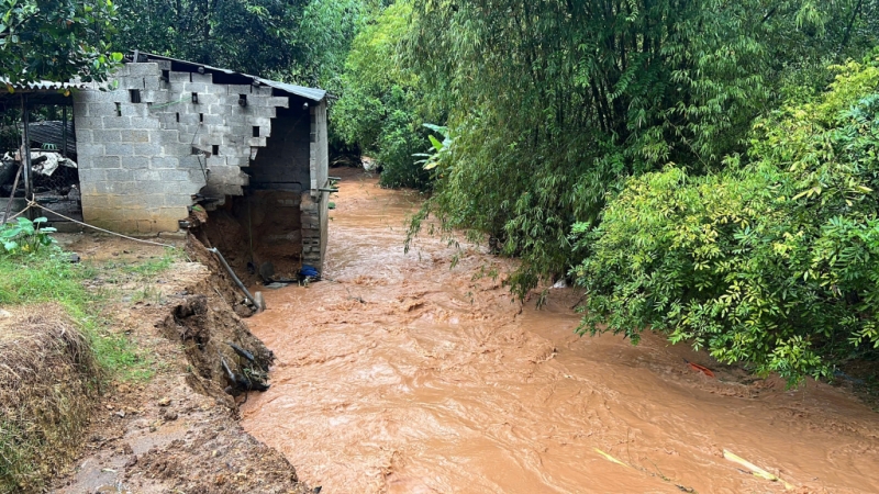 Các ngôi nhà cạnh sông, suối bị đổ nát.