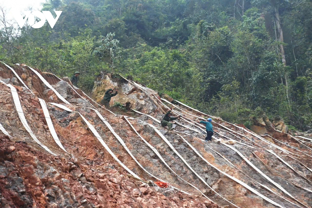 Trung úy Phan Thanh Vẫn, Trung đội trưởng thông tin phụ trách 1 tổ công tác đang thi công trên tuyến, chia sẻ: “Hiện tại anh em trong đội đang giúp nhà thầu vác sắt lên để làm kè lưới tránh đá sỏi lăn xuống công trường, nhằm đảm bảo an toàn trong quá trình thi công. Trong quá trình làm anh em đều rất quyết tâm, nhiệt tình và trách nhiệm, mọi đều cố gắng vì xác định đây là nhiệm vụ đặc biệt quan trọng mà đơn vị giao cho. Ở đây thì điều kiện đi lại, ăn uống sẽ khó khăn, vất vả hơn nhưng anh em đều cố gắng khắc phục khó khăn, quyết tâm hoàn thành Chiến dịch Đông Khê 2026".