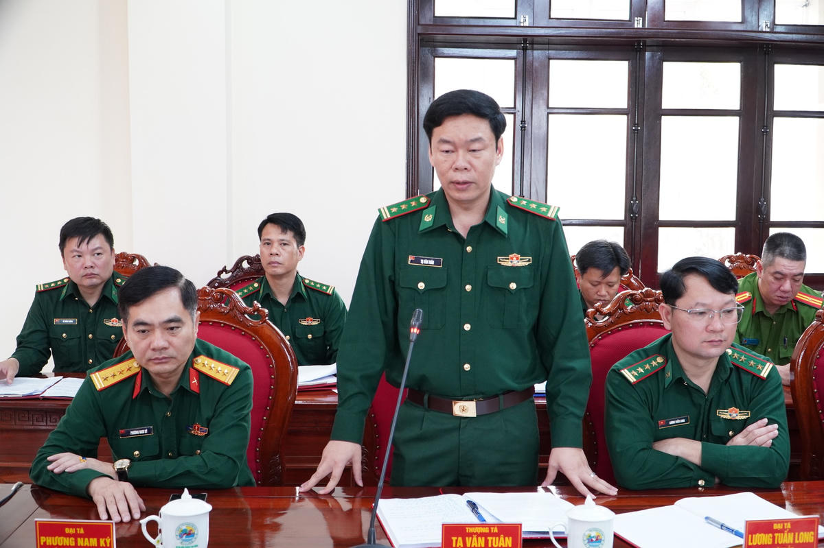 Thượng tá Tạ Văn Tuân - Chỉ huy trưởng Ban chỉ huy Bộ đội biên phòng tỉnh Cao Bằng phát biểu.