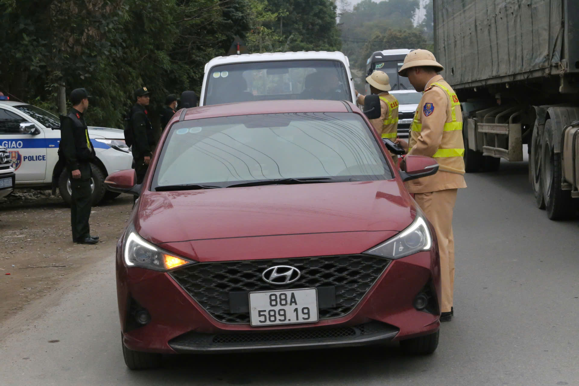 Kiểm tra nồng độ cồn đối với các lái xe lưu thông trên quốc lộ 6 để đảm bảo an toàn giao thông.