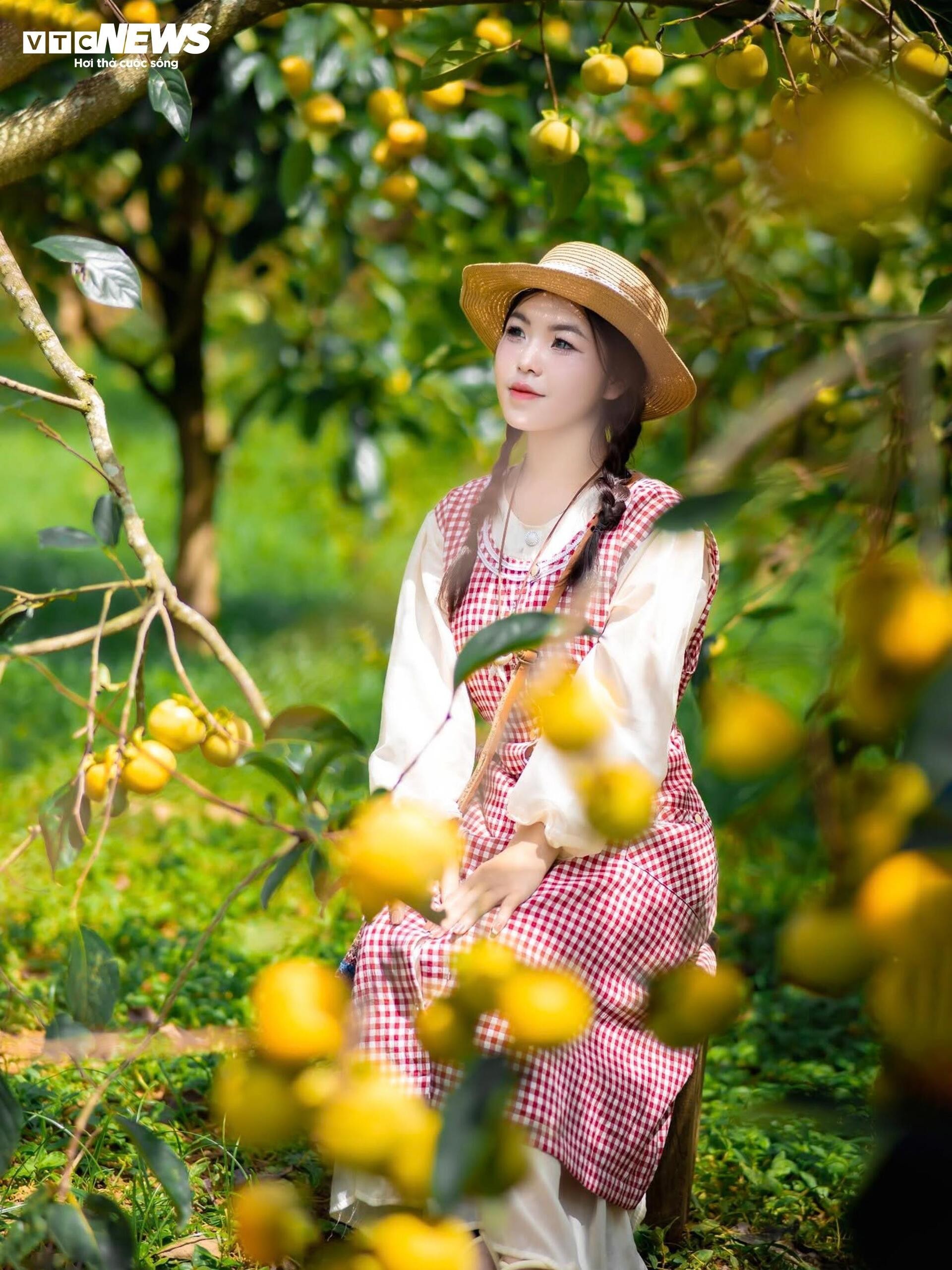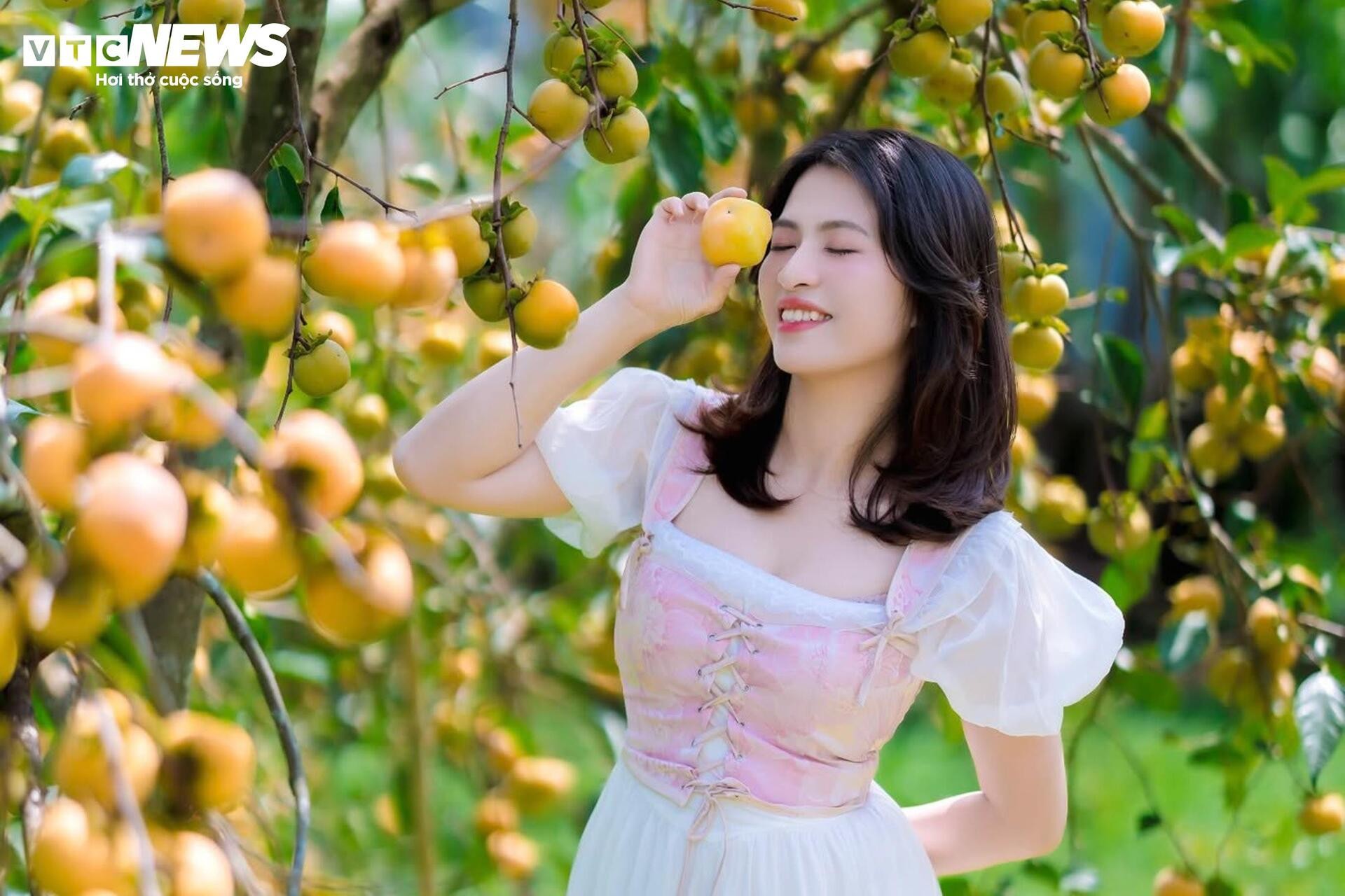 Ngoài du khách đến tham quan, mùa hồng còn thu hút nhiều thiếu nữ và nhóm bạn trẻ tìm đến săn ảnh. Trong tà váy duyên dáng, nụ cười rạng rỡ bên những cành hồng trĩu quả, họ tạo nên những khung hình đậm sắc thu trên cao nguyên.
