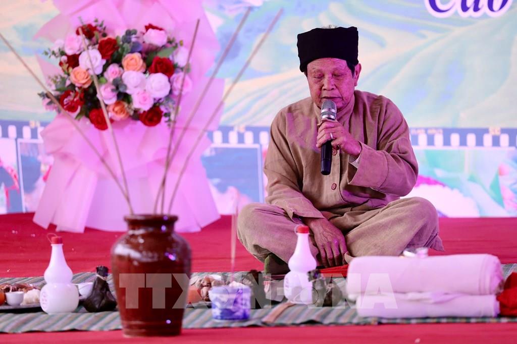 Thầy Mo thực hiện nghi lễ mừng cơm mới. Ảnh: Trọng Đạt-TTXVN