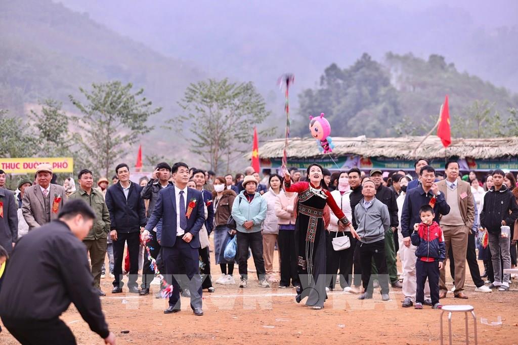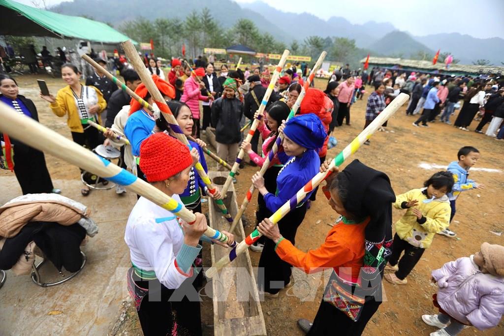 Du khách và đại biểu tham gia trò chơi ném còn tại lễ hội. Ảnh: Trọng Đạt-TTXVN