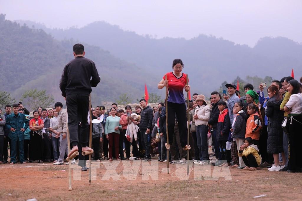 Trò chơi đi cà kheo tại lễ hội. Ảnh: Trọng Đạt-TTXVN