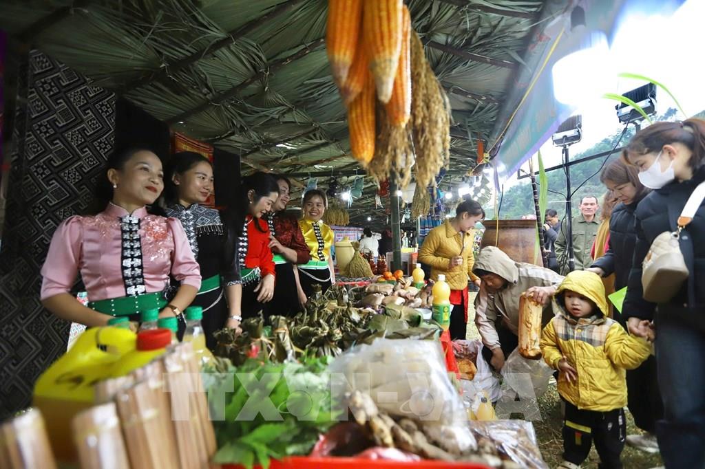 Các gian hàng bán đồ nông sản tại lễ hội. Ảnh: Trọng Đạt-TTXVN