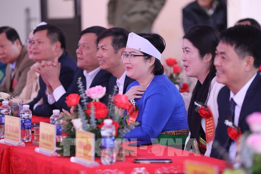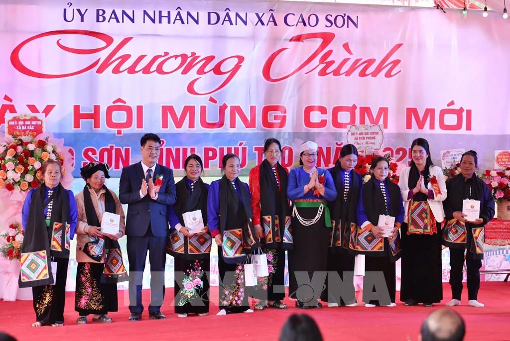 Đại biểu lãnh đạo xã Cao Sơn tăng hoa cho các đại diện xóm. Ảnh: Trọng Đạt-TTXVN