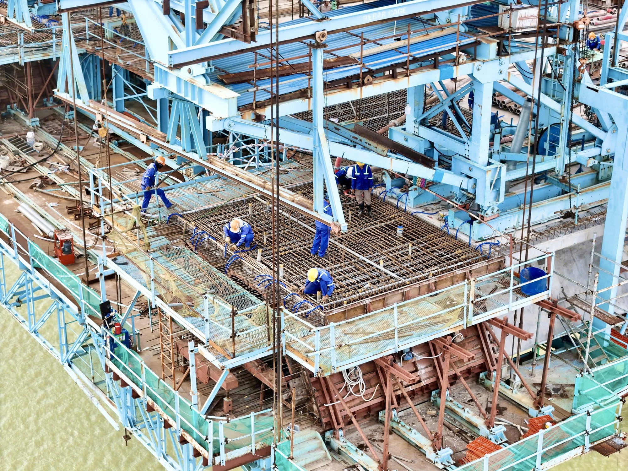 Công nhân tăng tốc thi công trên cầu Phước Khánh nối Đồng Nai - TP.HCM.
