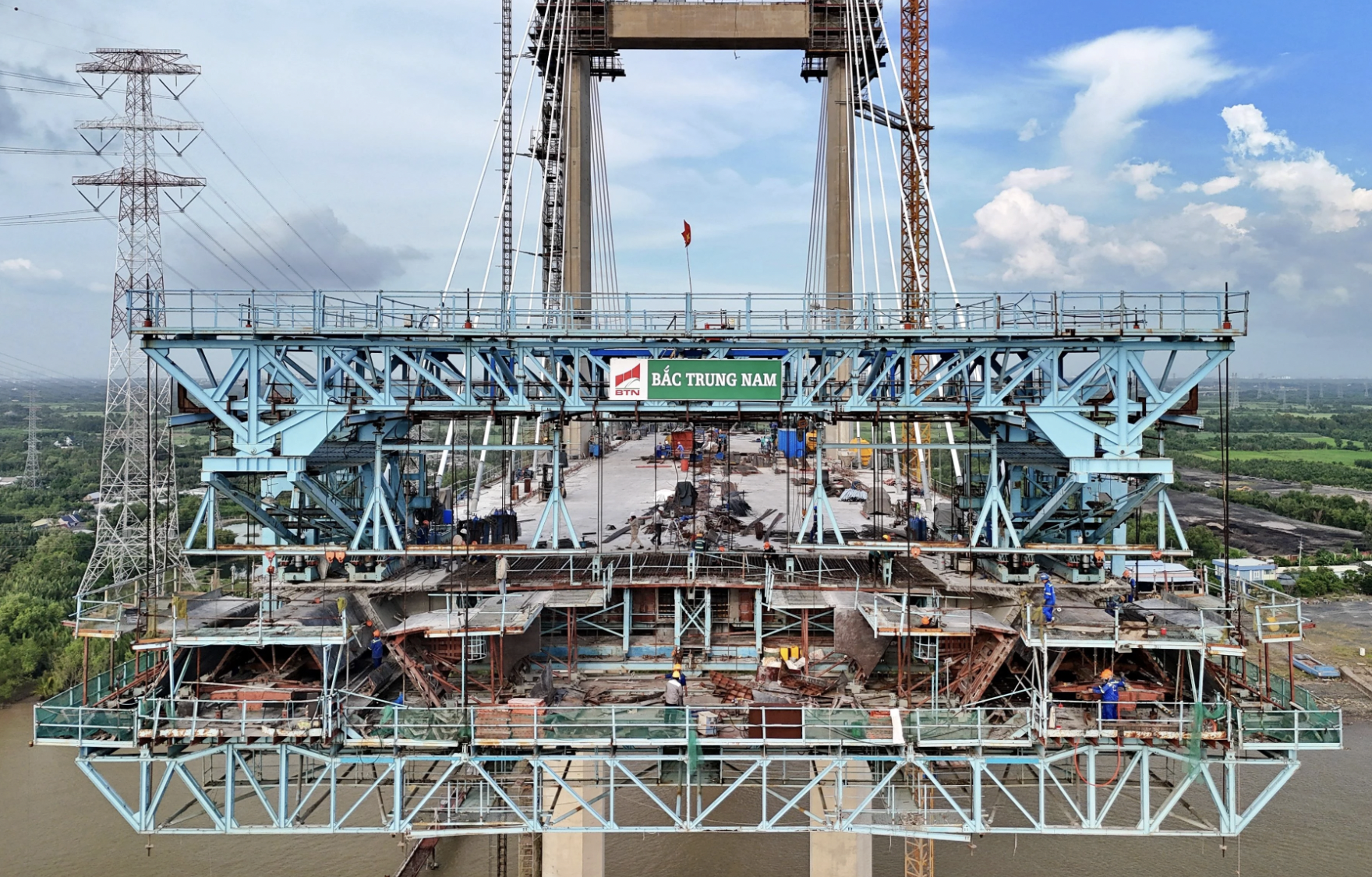 Hiện nay công nhân tập trung thi công cầu Phước Khánh nối Đồng Nai - TP.HCM.